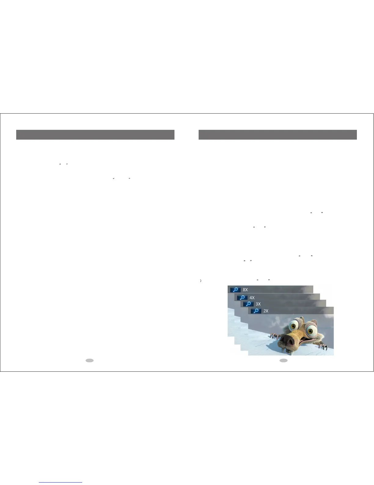 1 When playing a movie, you can use ZOOM button to enlarge the picture by 2X, 3X, 4X or 8X.