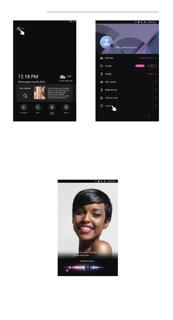 HiMirror Mini - User Login and Guest Mode; Logging into a User Account; Guest Mode and Login Methods