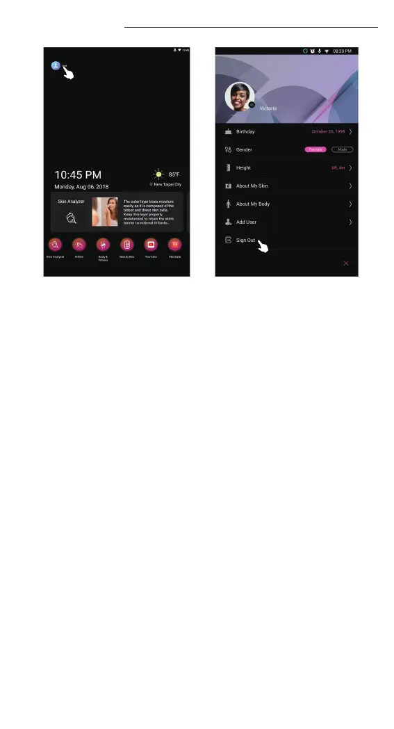 HiMirror Mini - User Account Sign-Out Procedure; Signing Out of the Current Session; Transition to Guest Mode