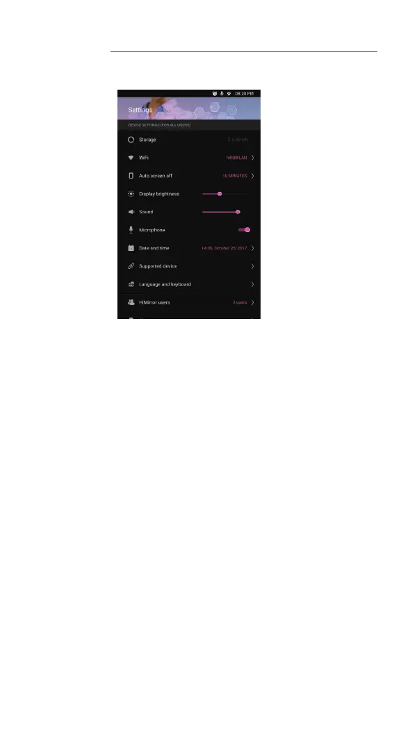 HiMirror Mini - Makeup Light and System Settings; Using the Magnifier Function; General System Settings Access
