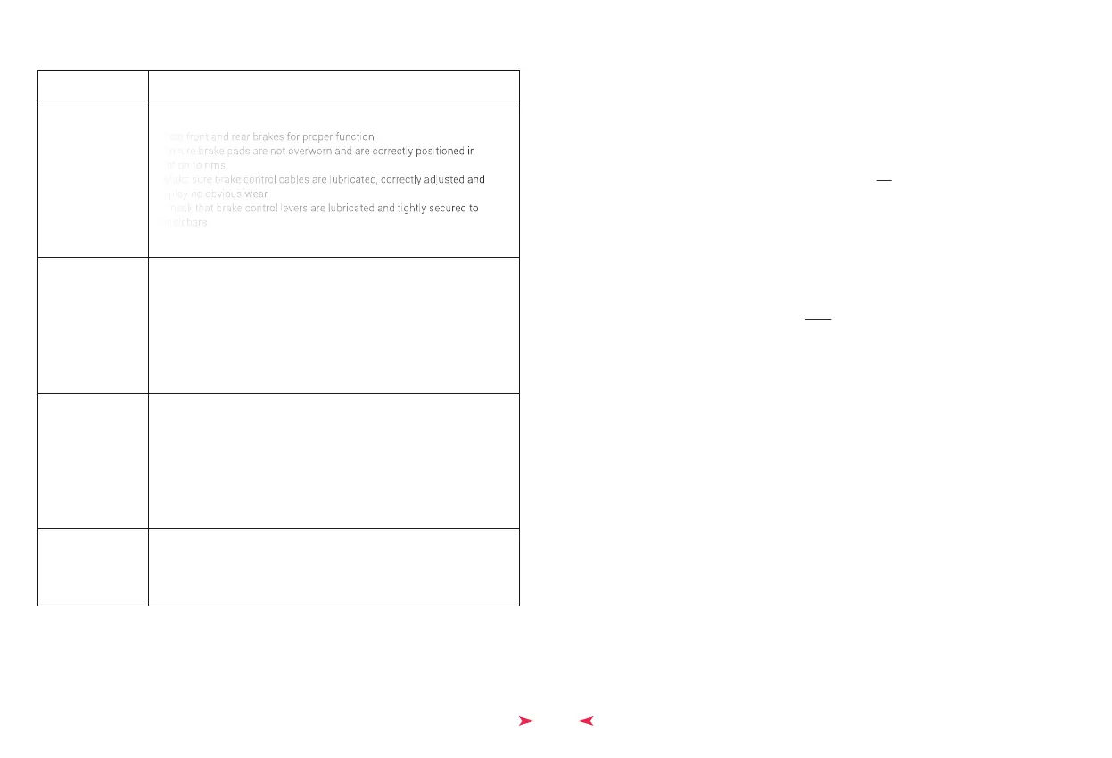 o Make sure brake control cables are lubricated, correctly adjusted and