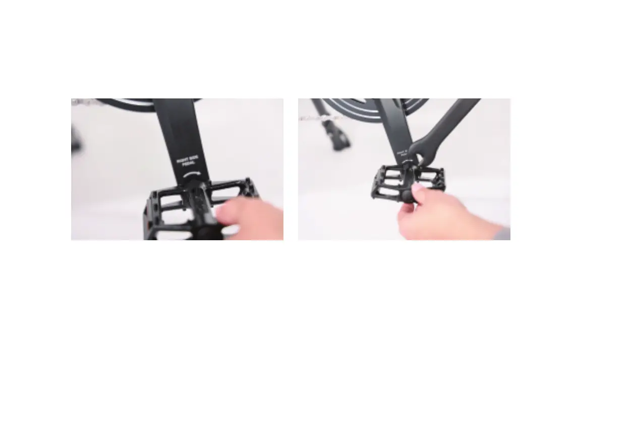 right pedal. After initial hand-tightening, finish tightening the pedals with a standard 15mm wrench .