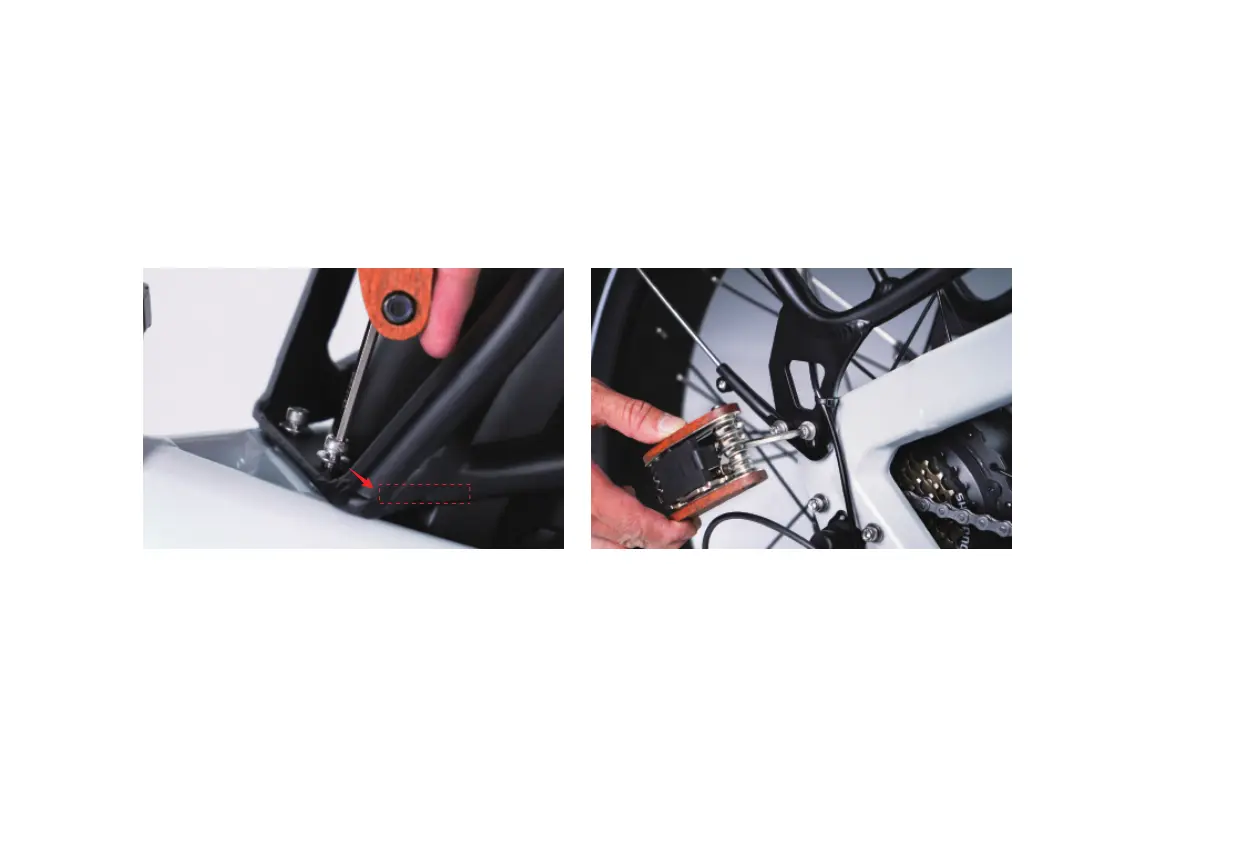 Tighten the eyelet bolts on both sides of the rear rack to the frame.