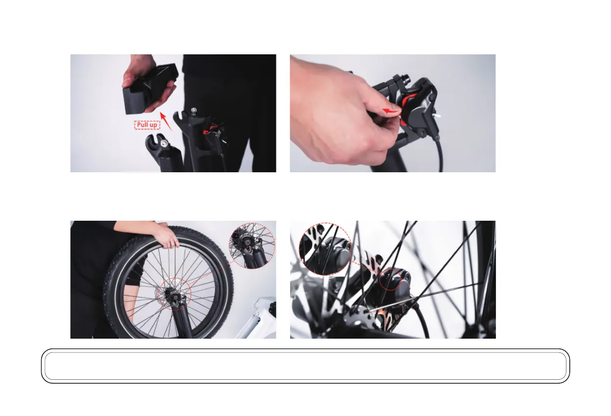 Remove the front forks protection bar by manually pulling it straight up. Pull out the red pad, which is used to protect the hydraulic brake caliper.