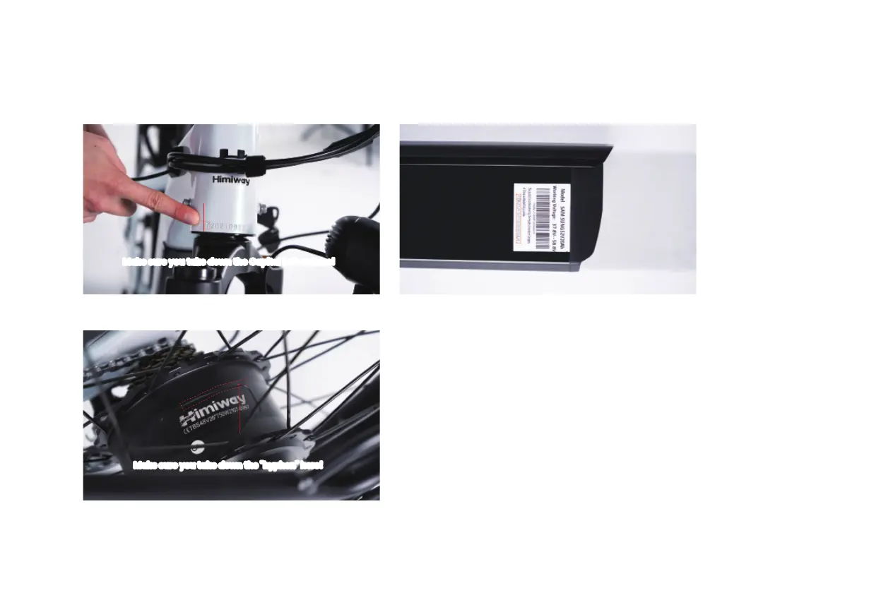 Please write down the serial numbers found on the head tube, battery and motor on the inside front cover of this manual to