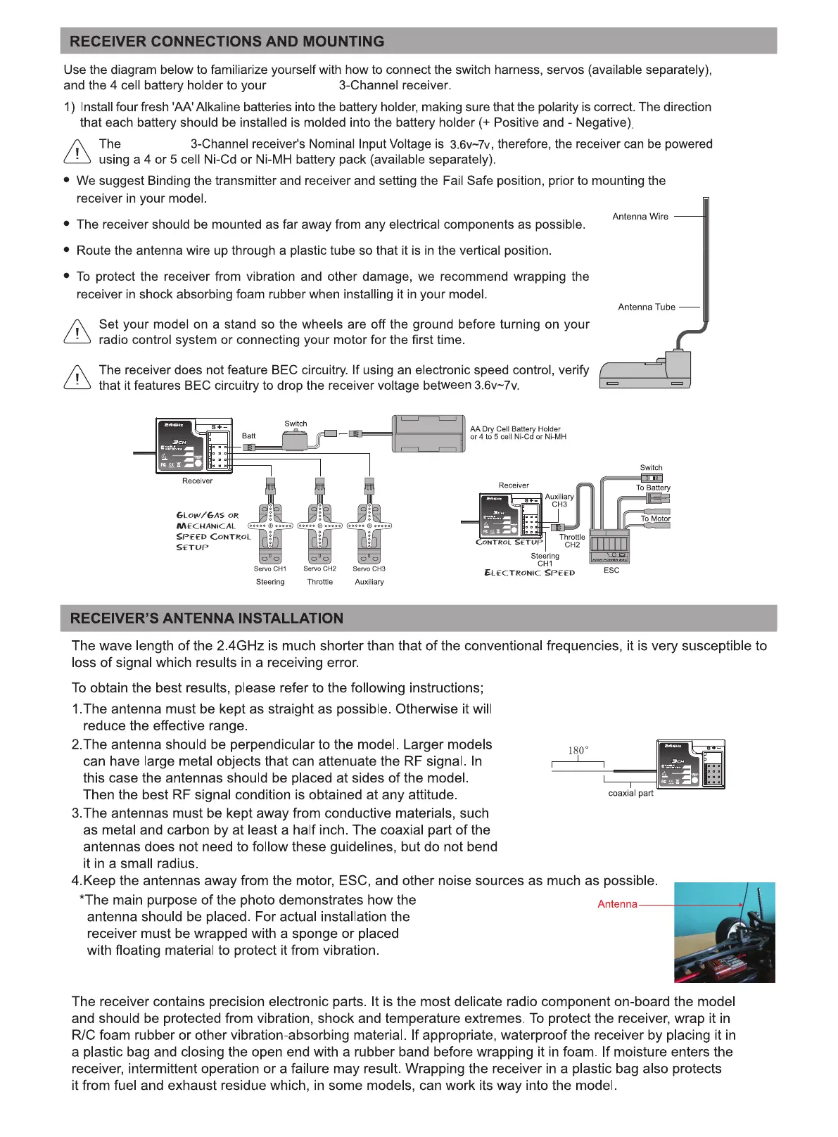 Himoto E18Xb - Receiver Connections and Mounting; Receivers Antenan Installation