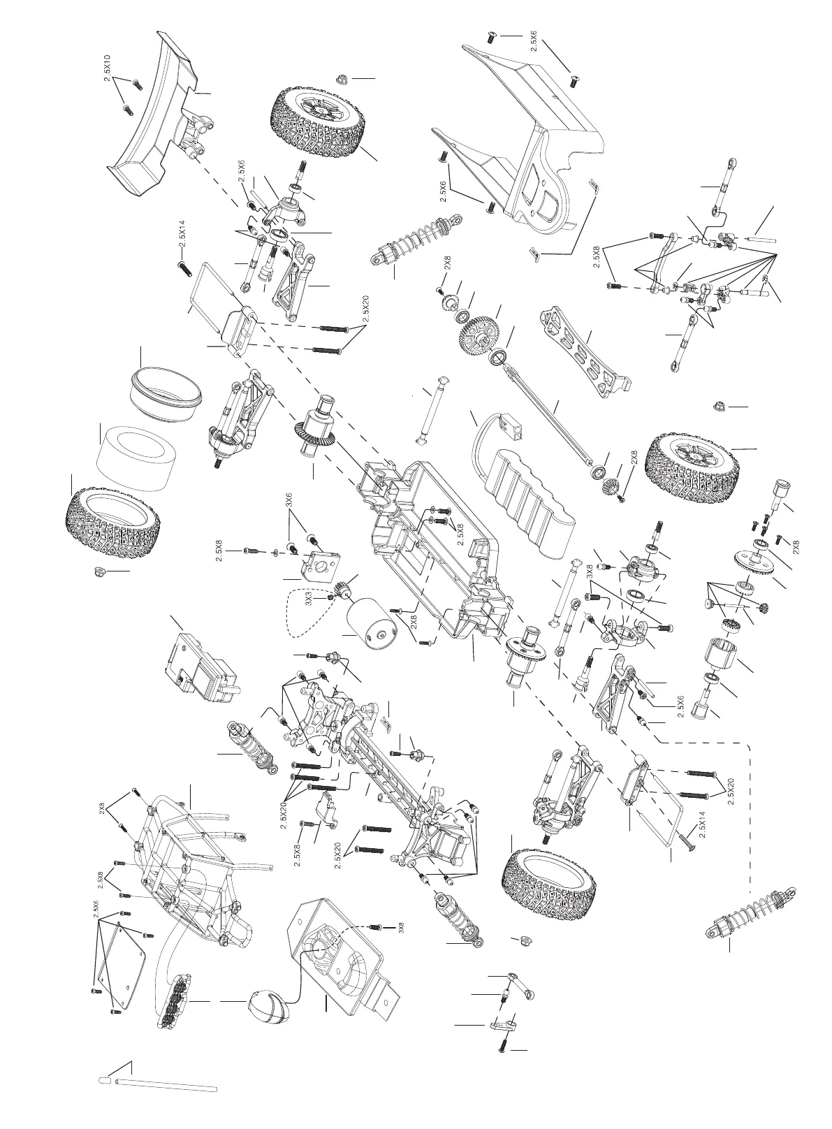 Himoto E18Xb - Explode Diagram of the Dessert Buggy