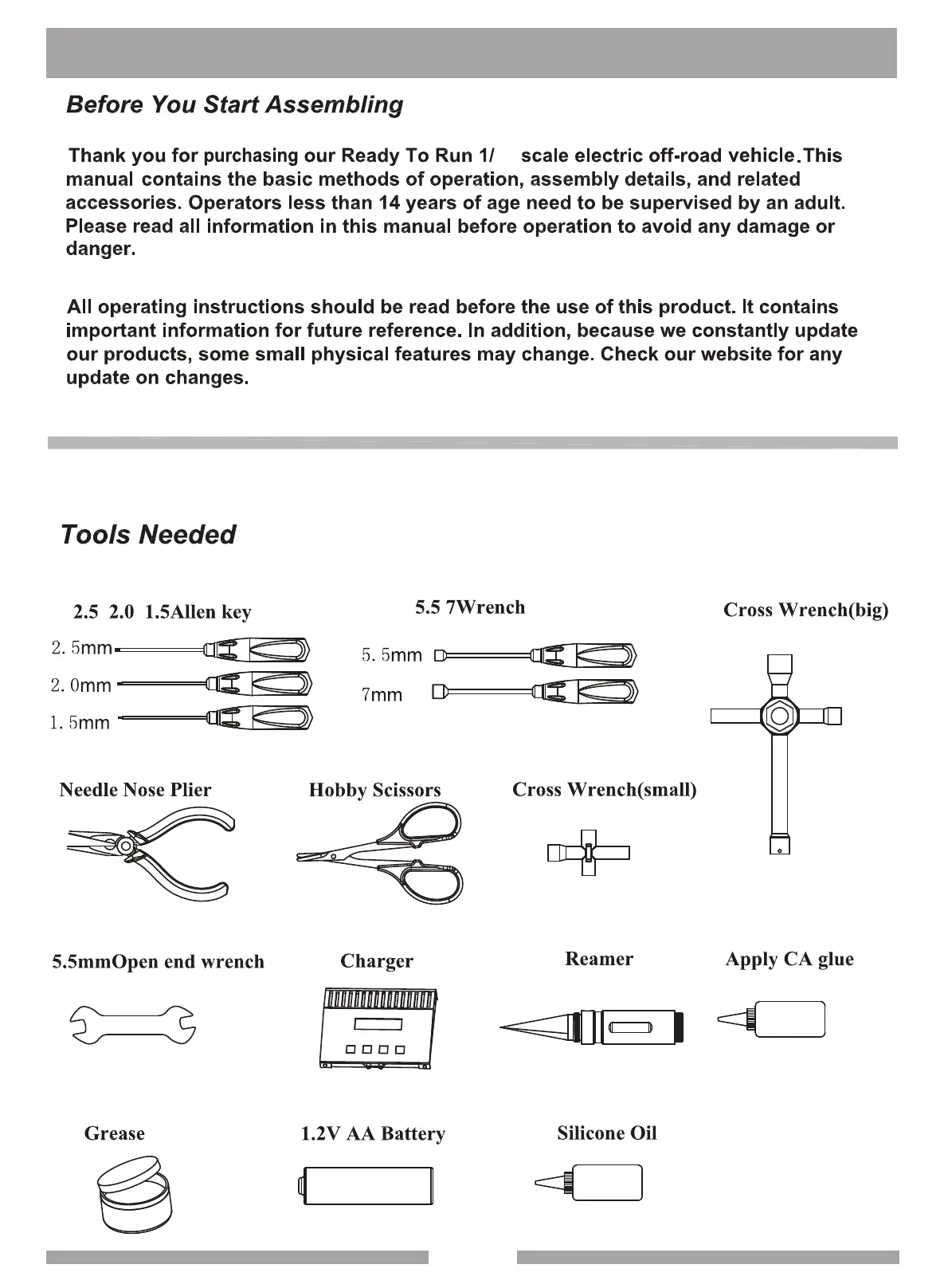 Himoto E8XBL - Before You Start Assembling; Tools Needed