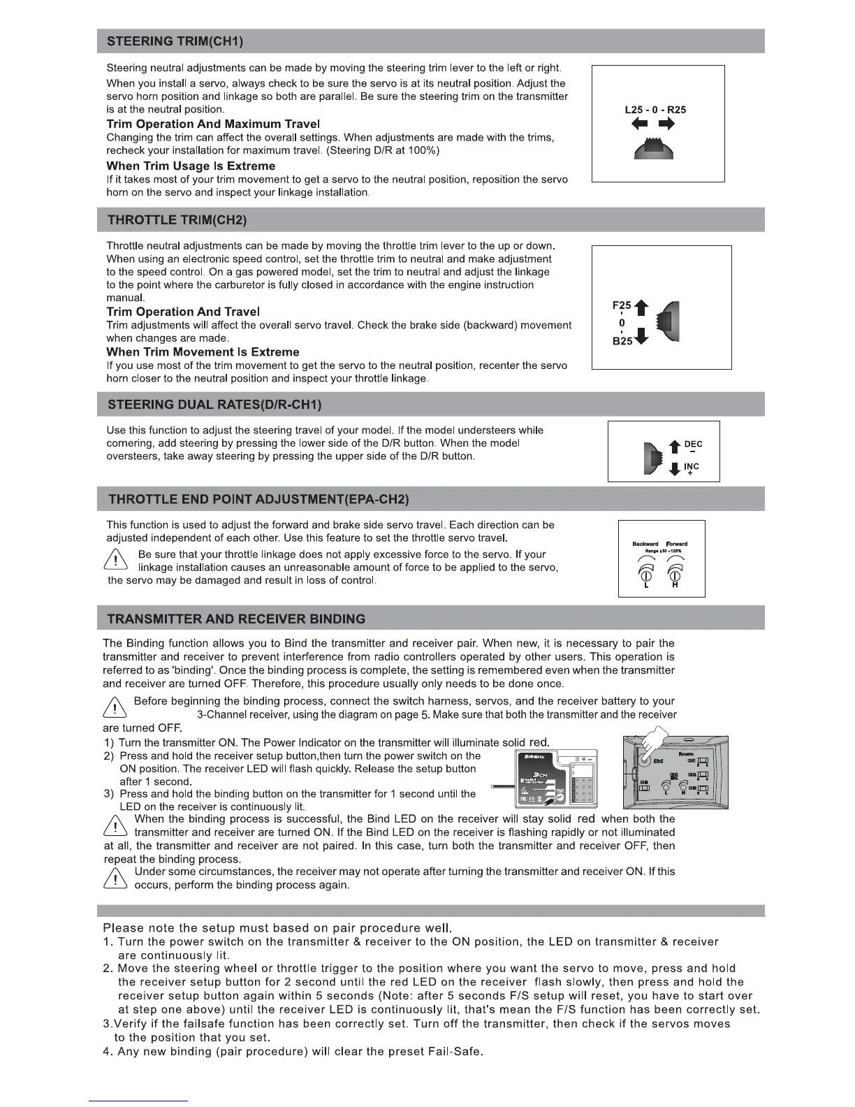 Himoto Emxt-1 - Steering Trim Adjustment (CH1); Throttle Trim Adjustment (CH2); Steering Dual Rates (D;R-CH1); Throttle End Point Adjustment (EPA-CH2)