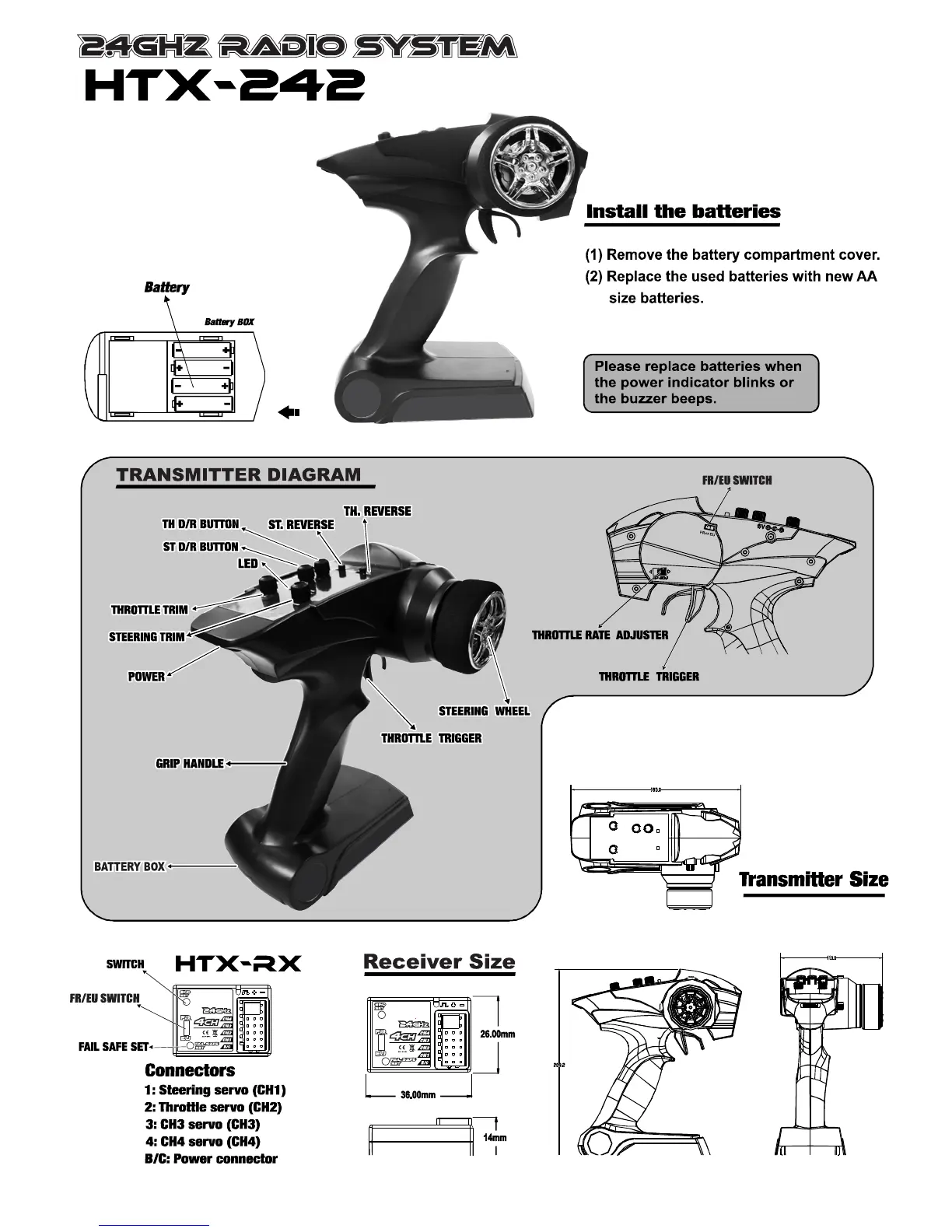 Himoto Emxt-1 - HTX-242 2.4 GHz Radio System; Install the Batteries