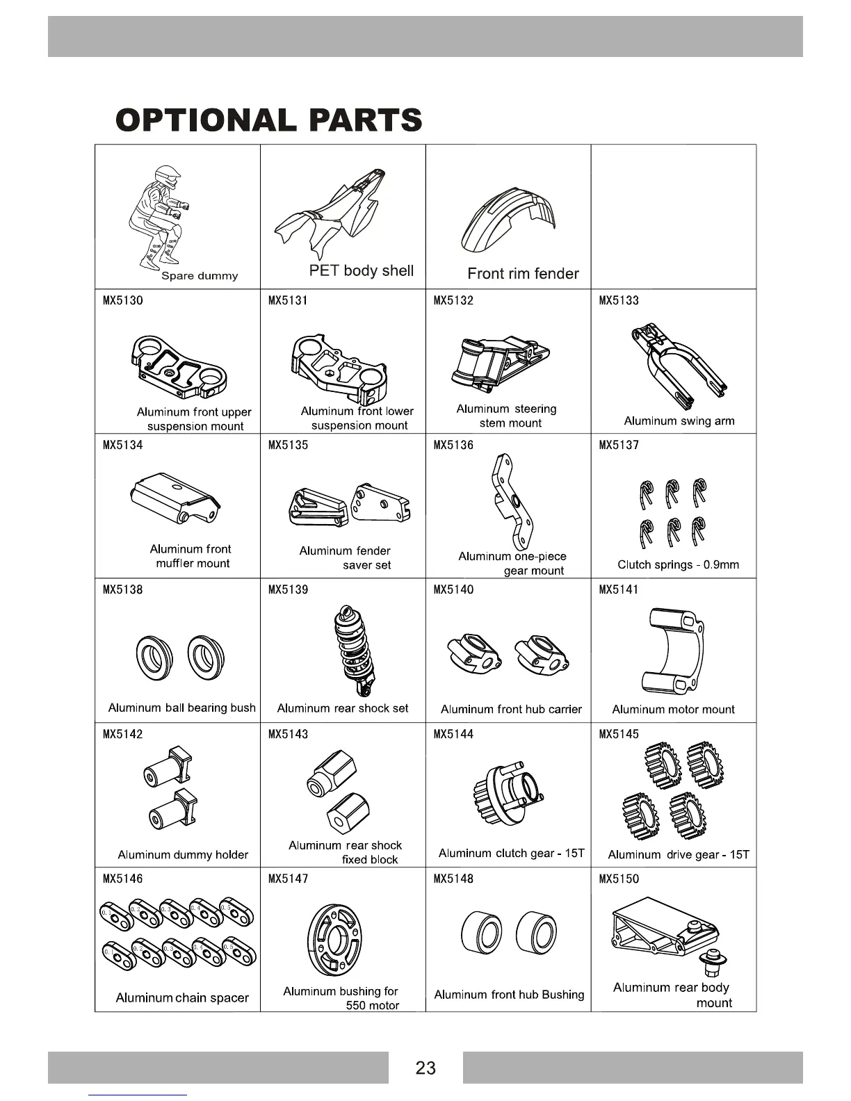 Himoto MX400BL - Optional Parts; Performance and Cosmetic Upgrades