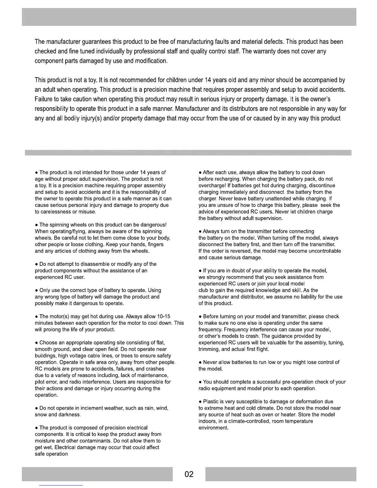 Himoto MX400BL - General Safety and Precautions; Product Usage Warnings; Operational Safety Guidelines