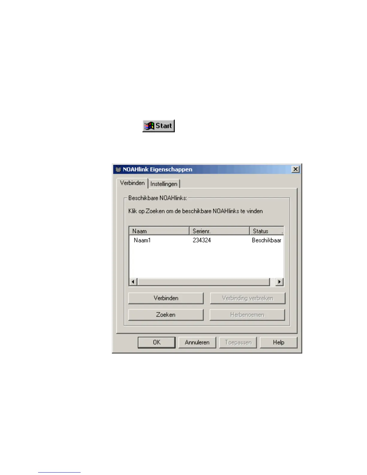 Figuur 6: Het scherm NOAHlink Eigenschappen