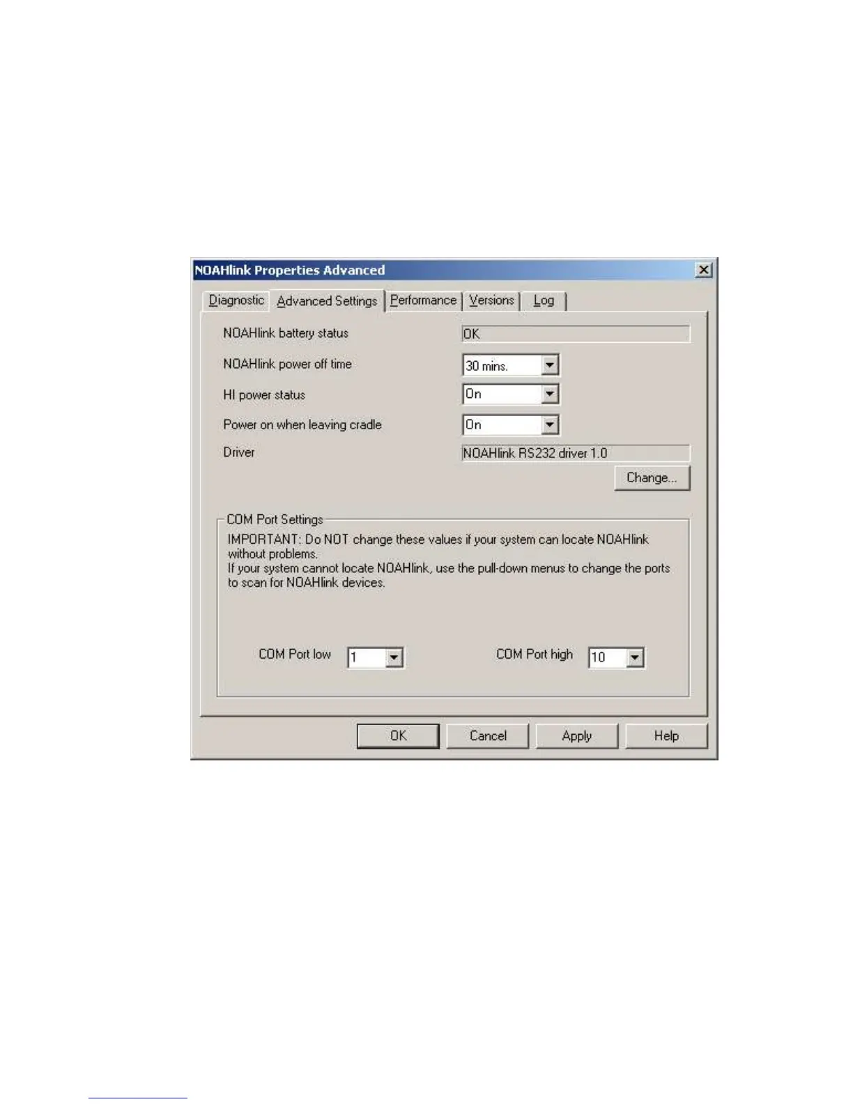 The NOAHlink battery status is listed as „OK‟ or „Low‟.