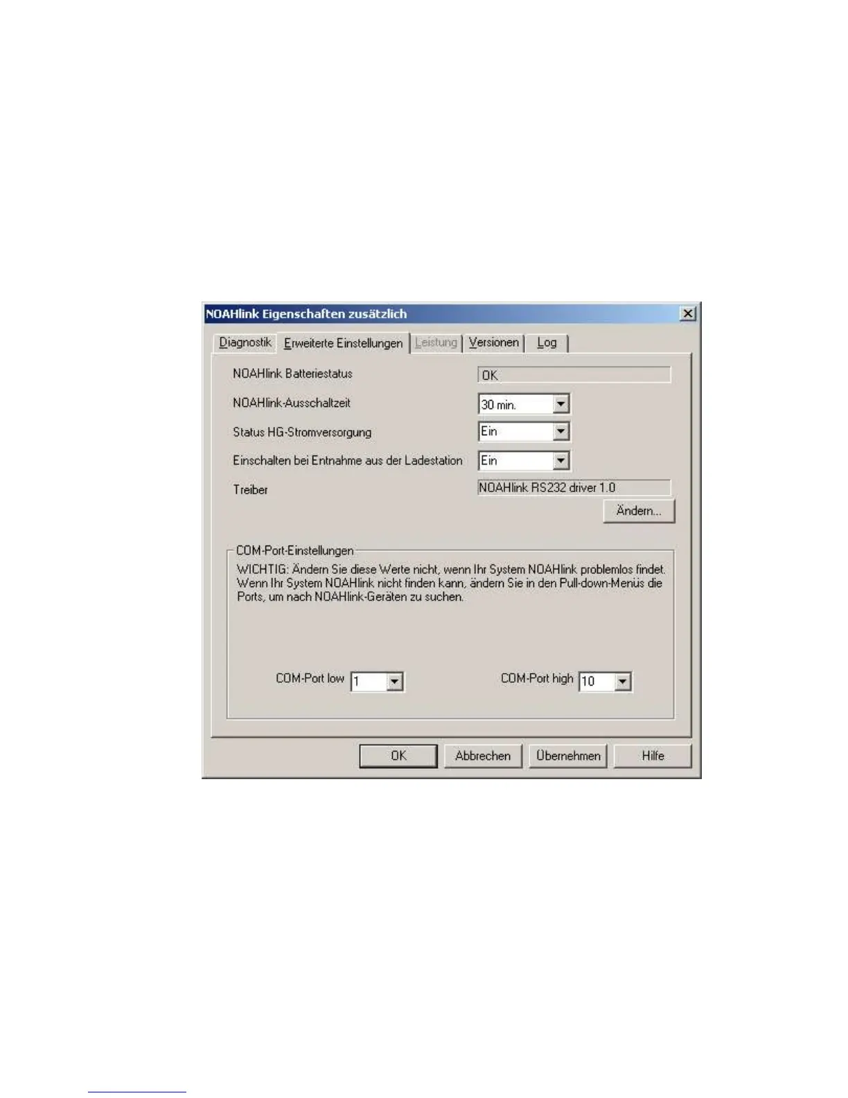 COM-Port-Einstellungen zu ändern, wenn Ihr System NOAHlink