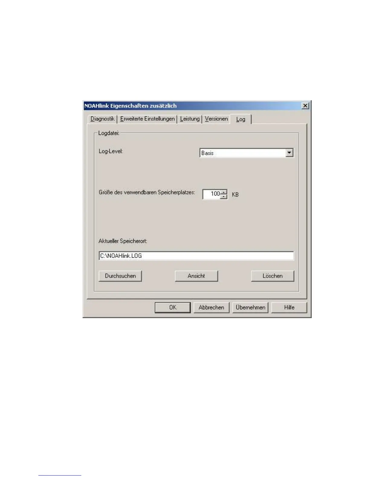Die Registerkarte "Log" ermöglicht es Ihnen NOAHlink's Log