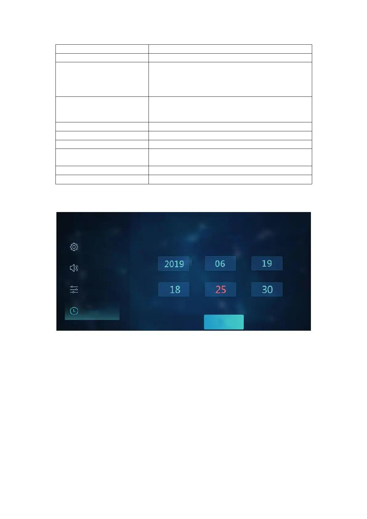 -In the standby screen, tap and hold on the setting button "O" on the back of the