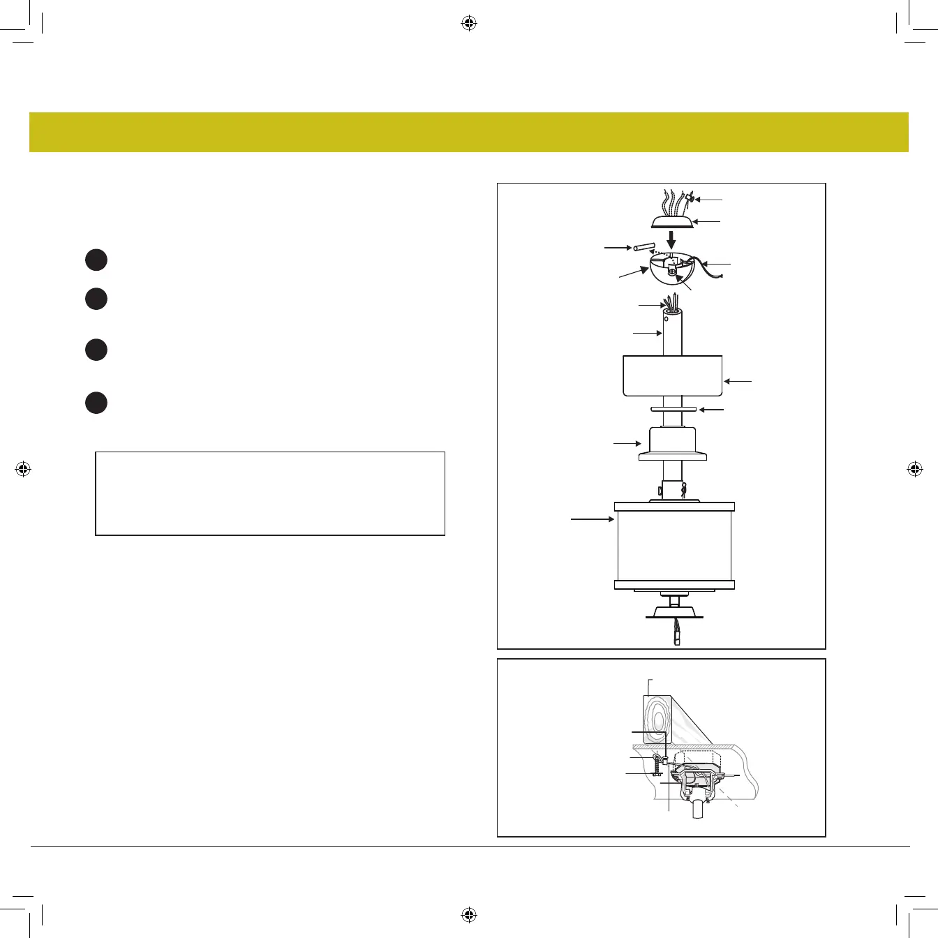 Soulevez la boule/la tige de suspension/le ventilateur dans l'ouverture