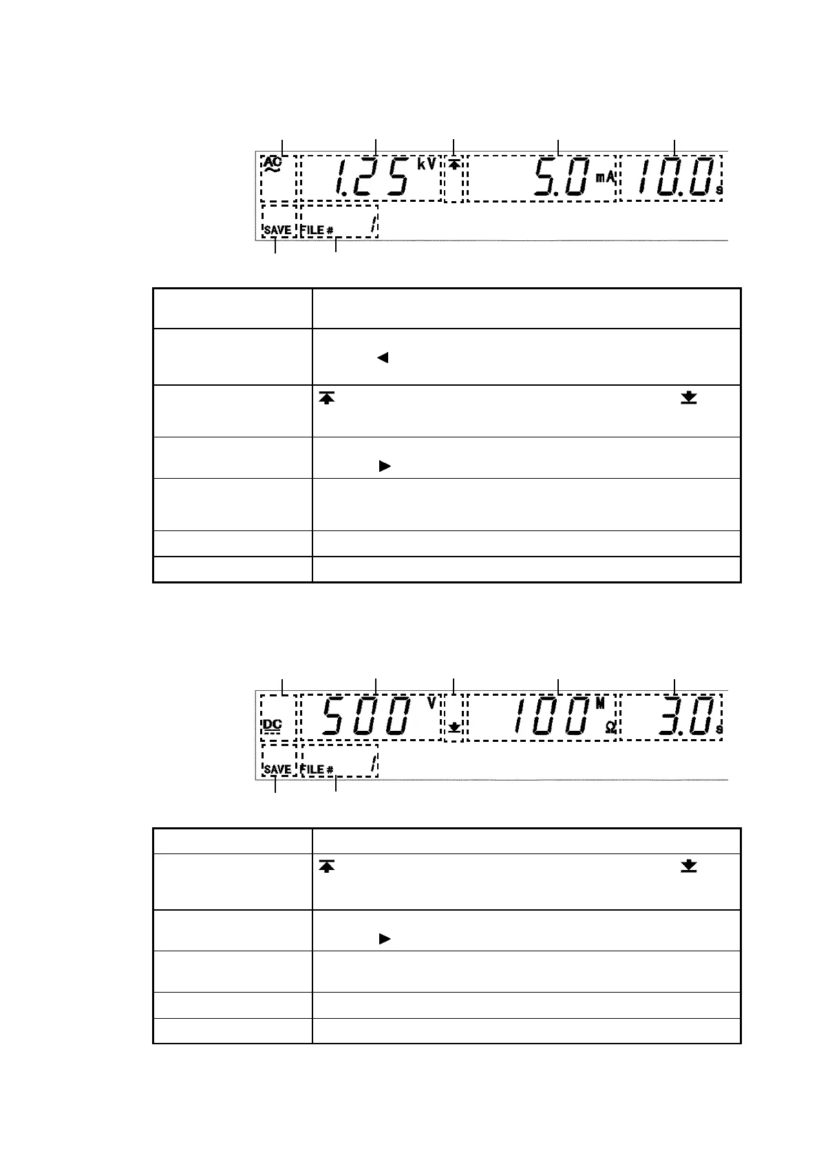 Test time for "saved data," ramp-up time, and ramp-down time.