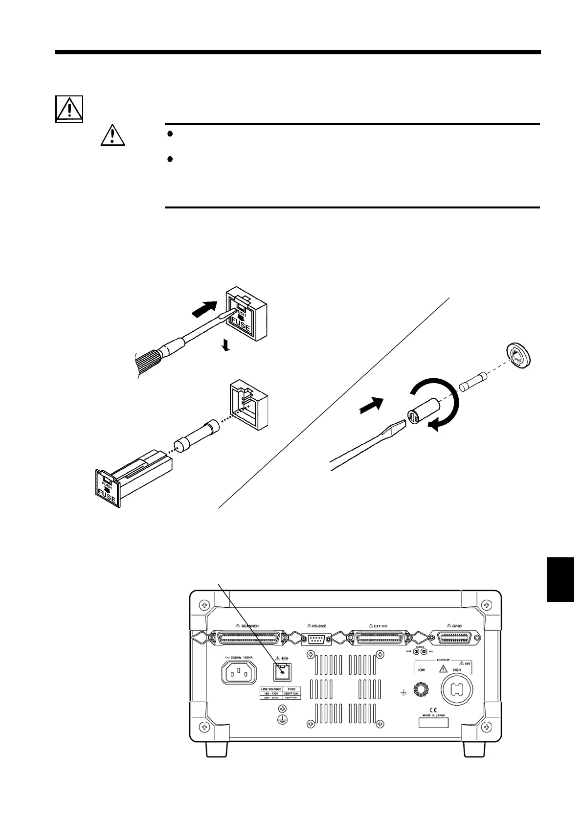 3. Replace the power fuse with a rated fuse. (The replacement method may