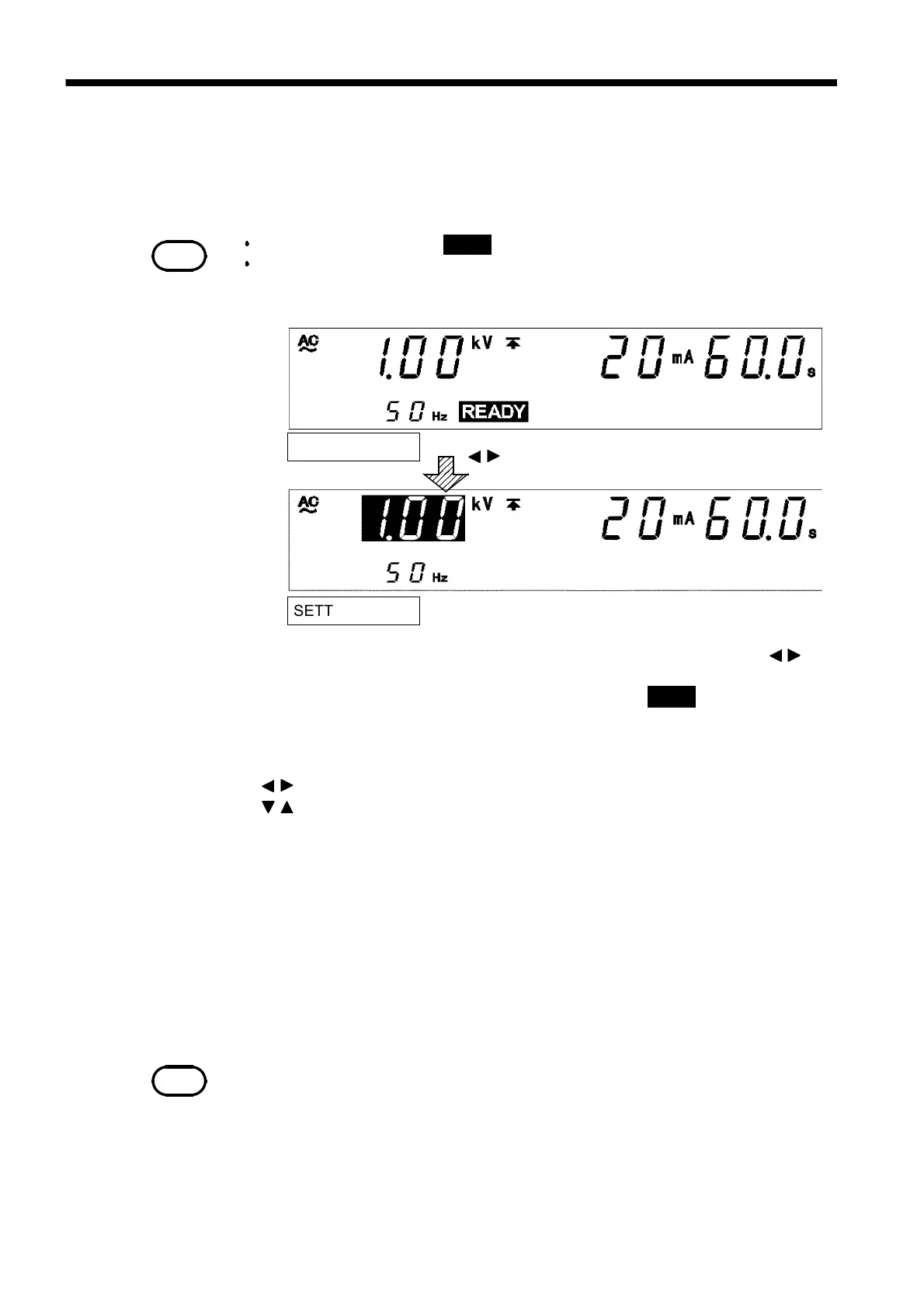 ・Note that the unit does not start test if the test-voltage value is greater than the