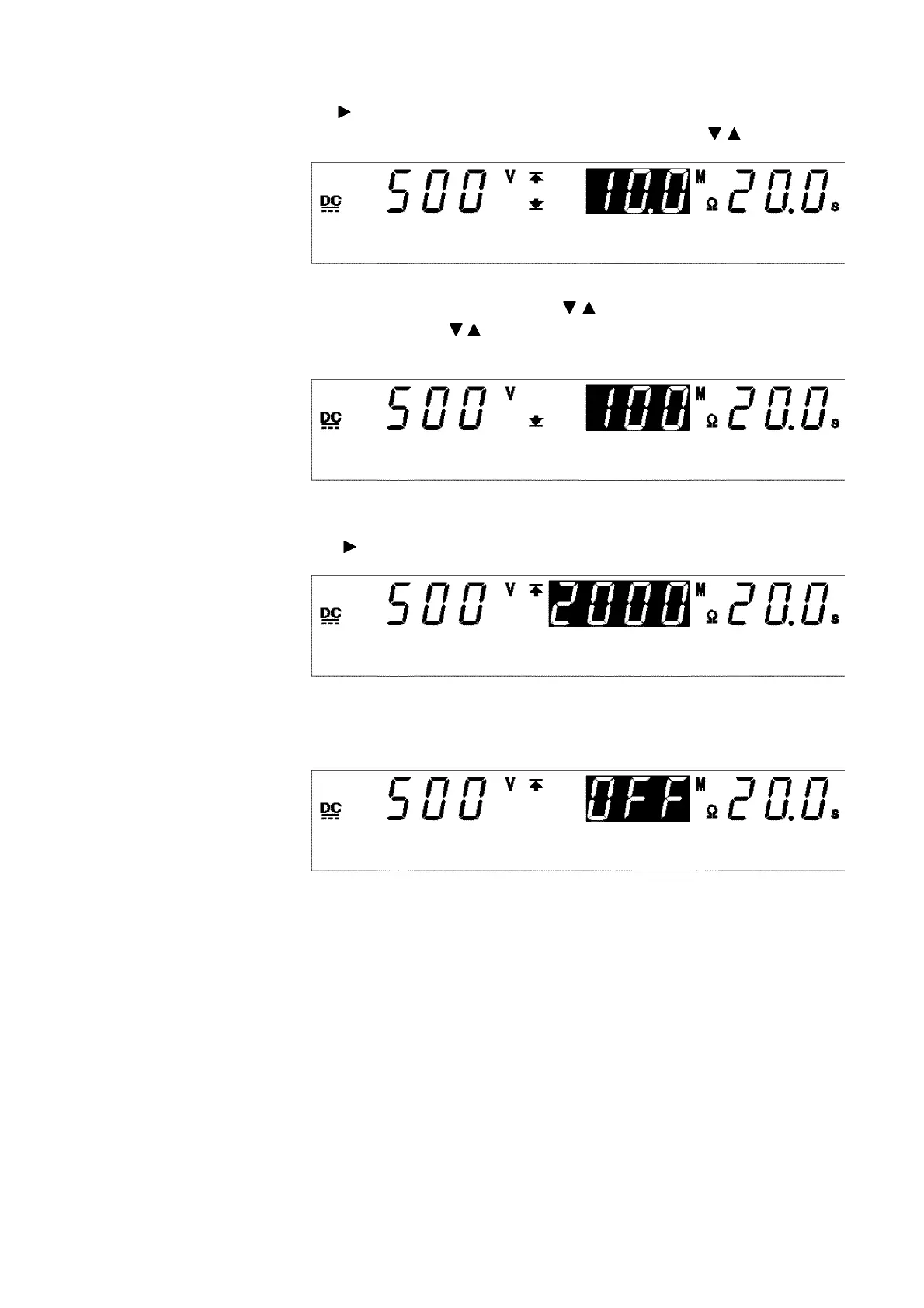 Press the key to move the flashing cursor to the lower-limit value.
