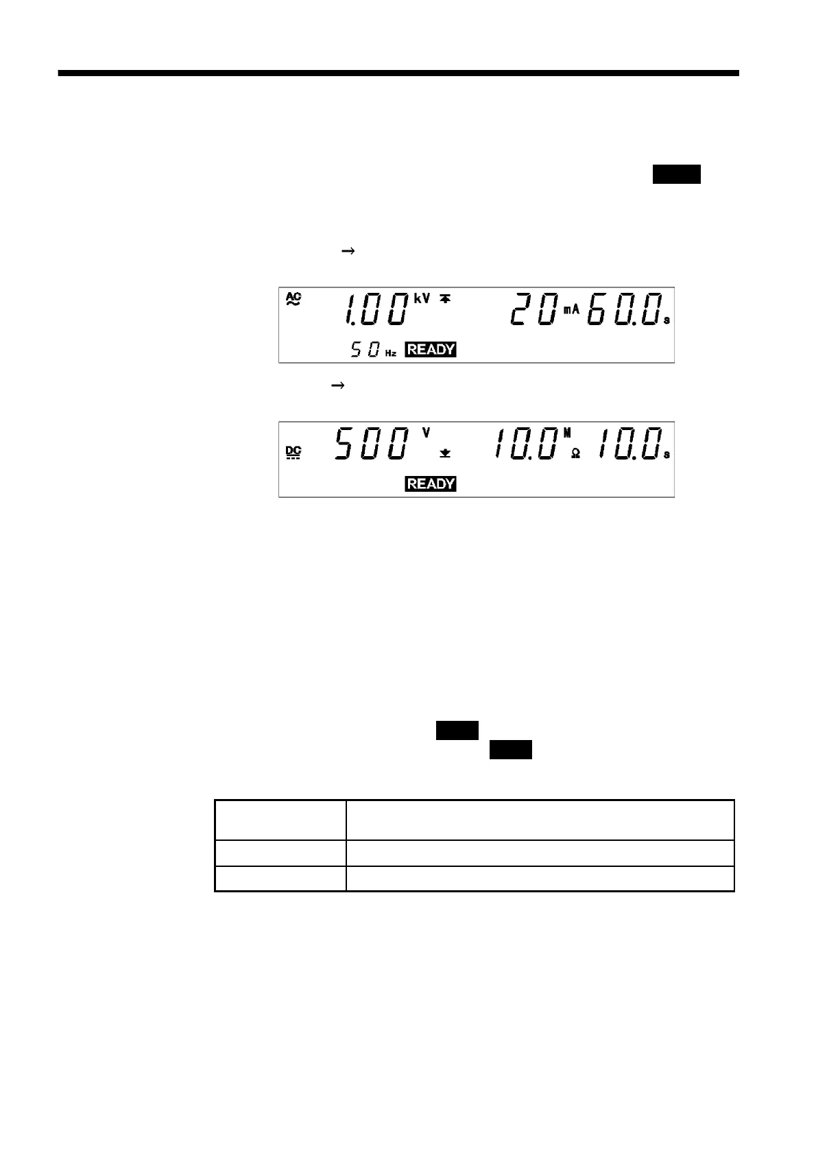The settings for W I mode are the same as those for withstand-voltage