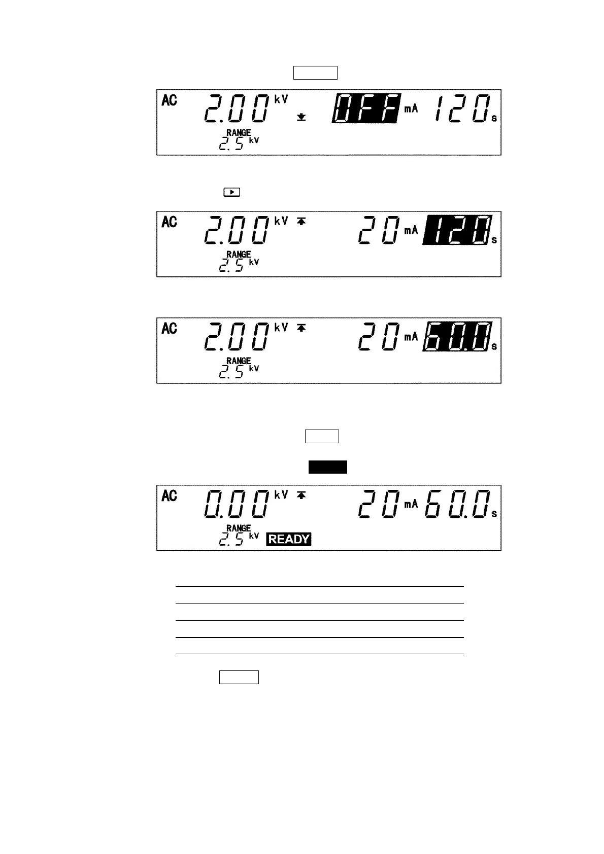 the READY state, the displayed comparative-voltage value is replaced with a