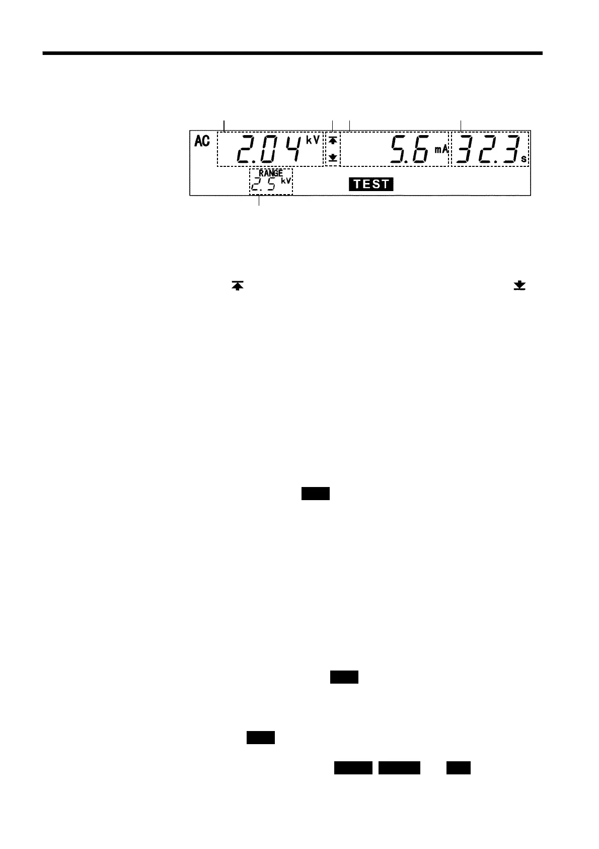 If the elapsed test time exceeds 999 s, "_" is displayed, but the voltage