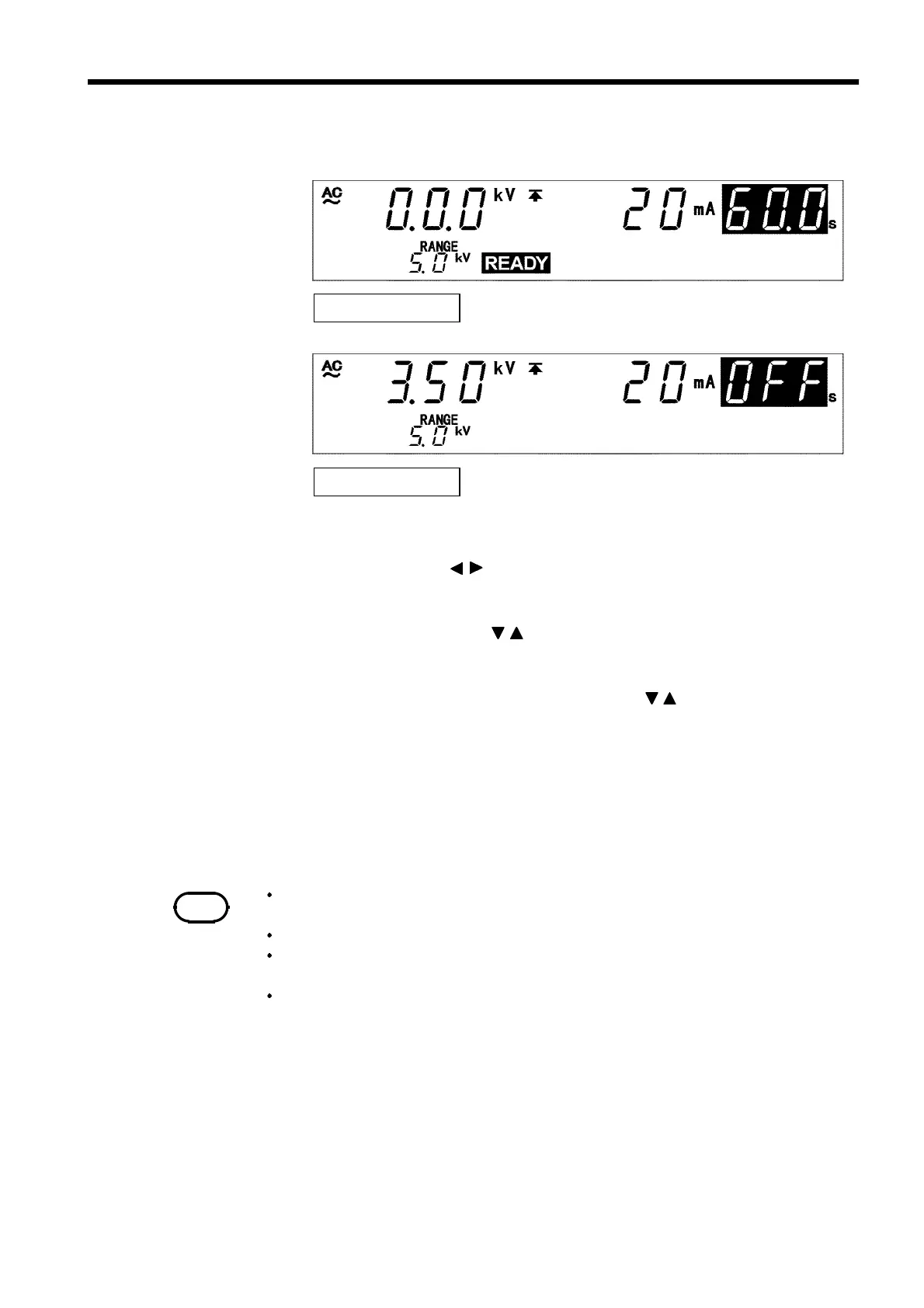 If no flashing cursor is displayed in the withstand voltage mode READY