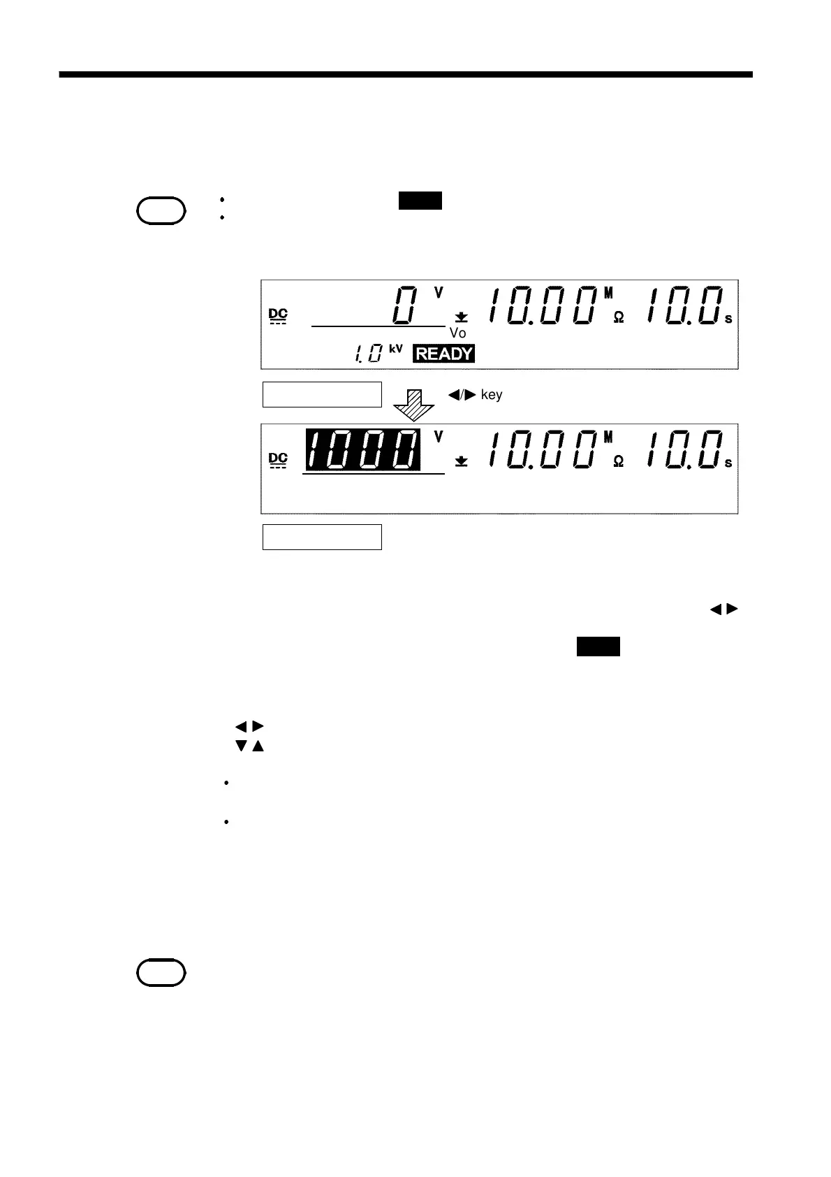 keys, the flashing cursor appears where the test-voltage is indicated to