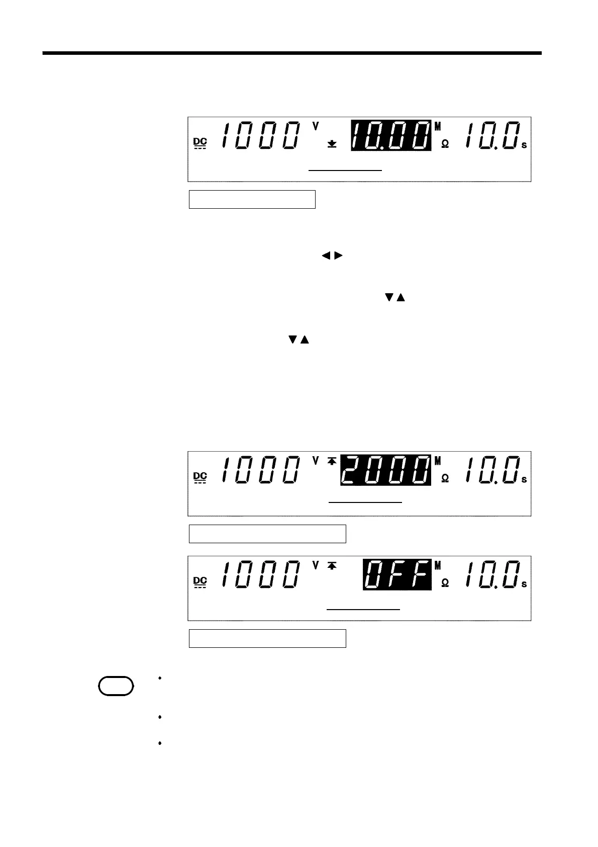 If no flashing cursor is displayed in the insulation resistance mode