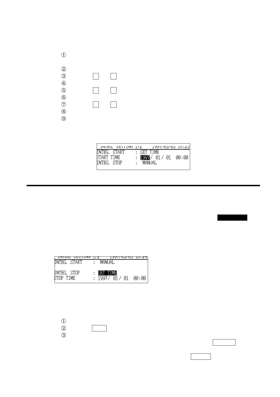 If "MANUAL" is selected, integration is stopped by using the START/STOP key