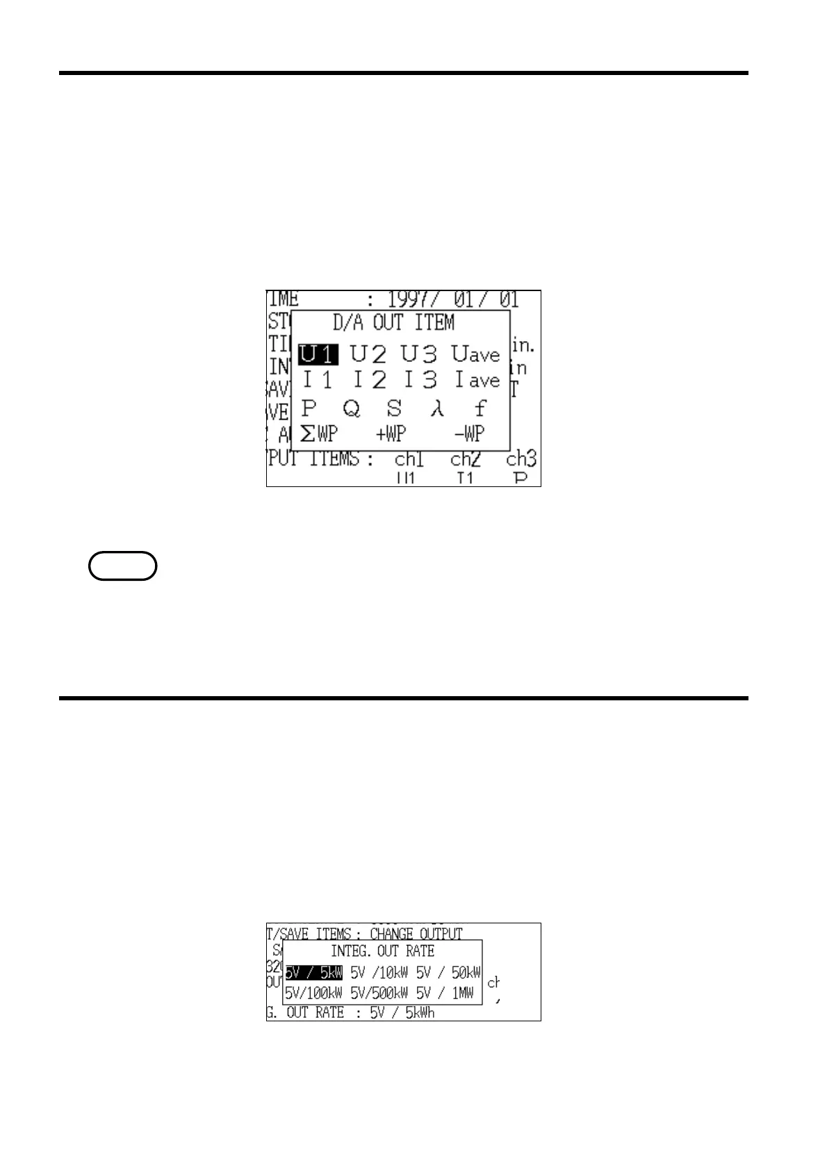 This item sets the output rate when using D/A output of integrated values