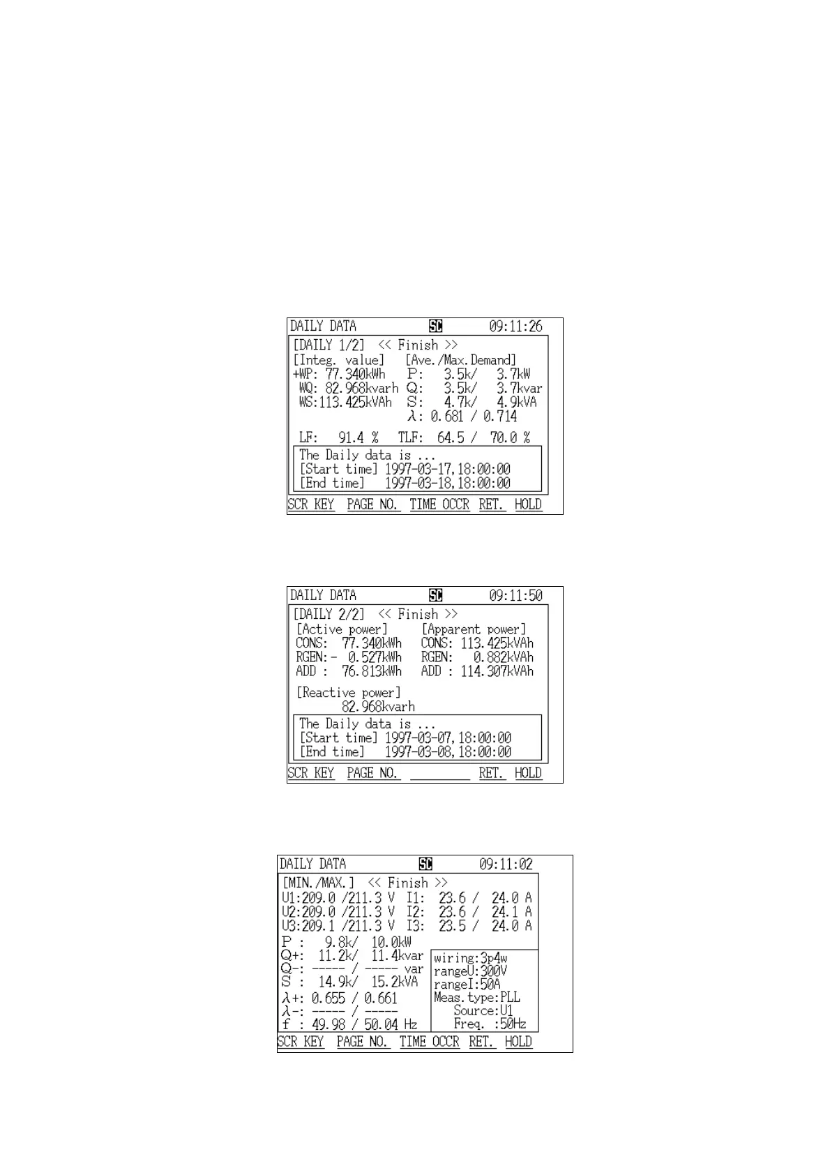 "Daily Report" screen page 2/2 displays measured values concerning power