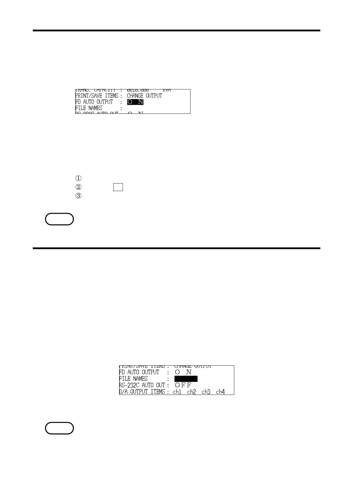 Select "ON" in order to save measurement data to floppy disk automatically.