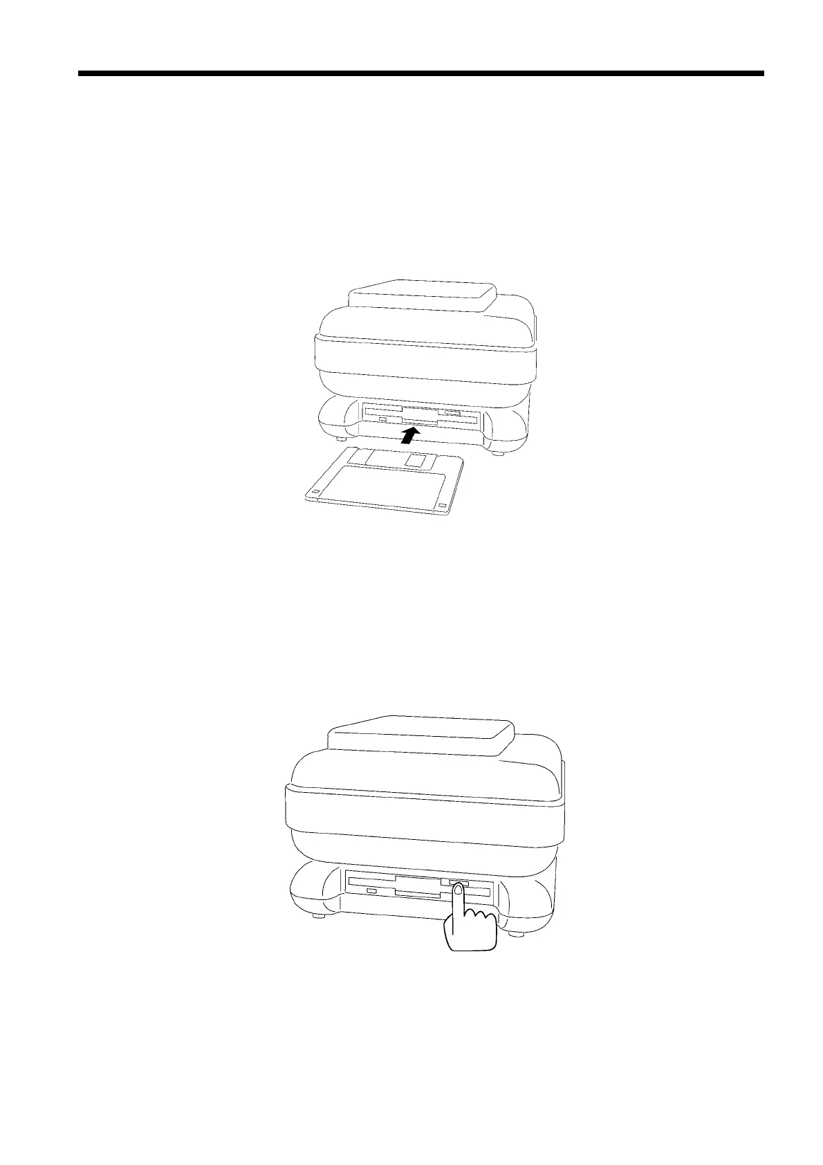 Pressing the Eject button as shown in the diagram causes the floppy disk to