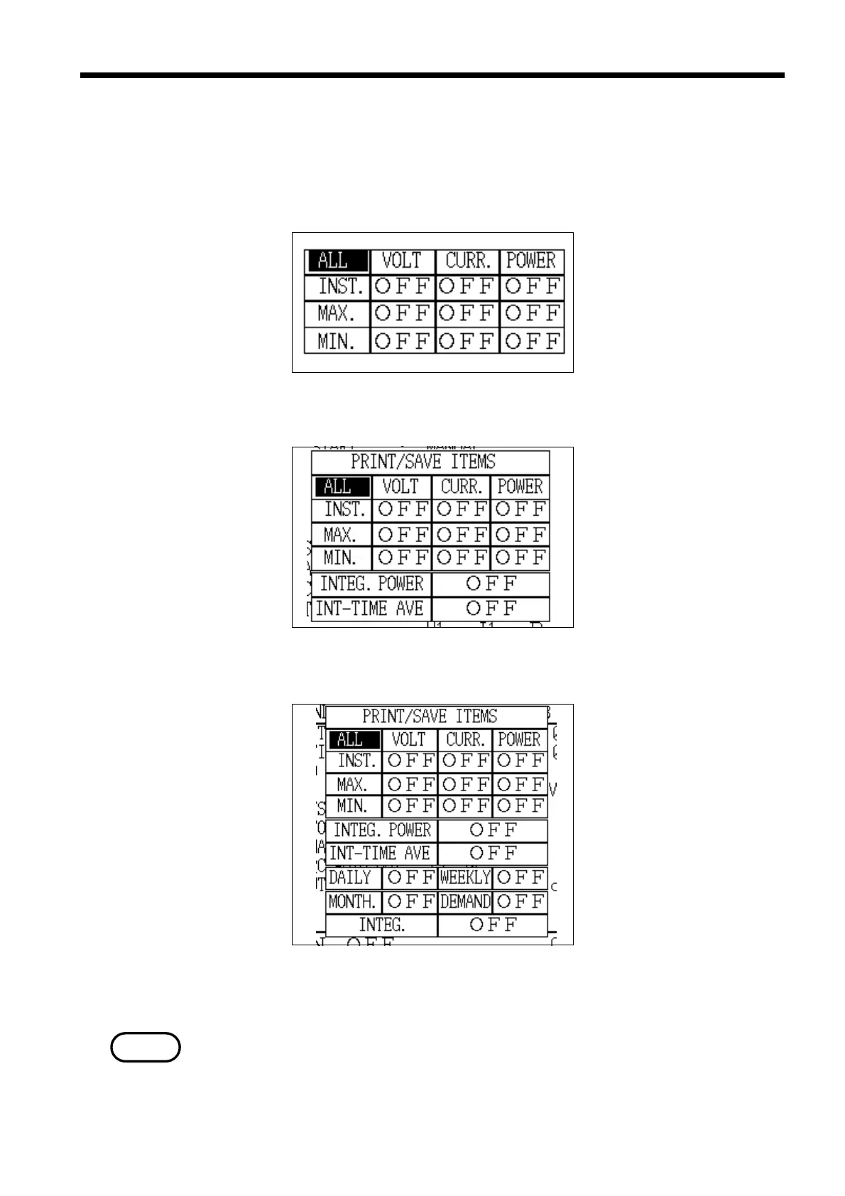 (1) Set the print/save items on the setting screens for the measurement modes