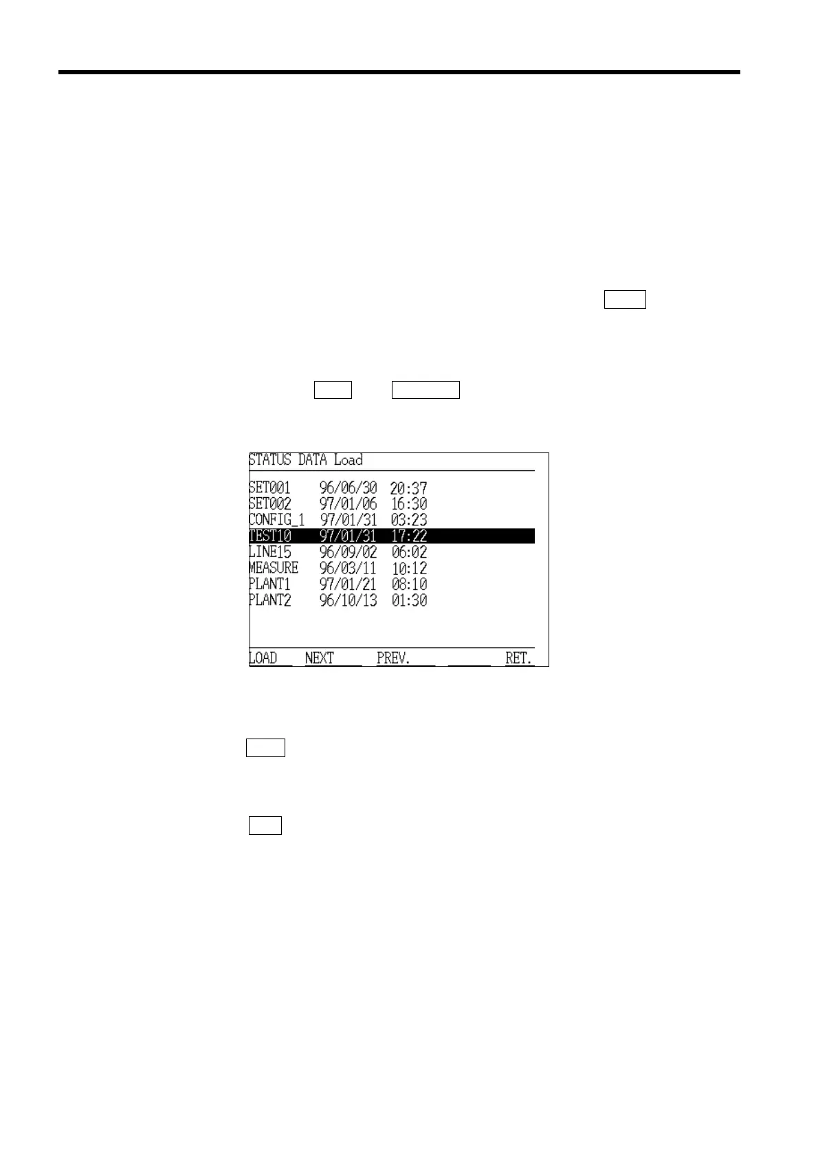 (2) Position the cursor at "STATUS DATA Load" and press the