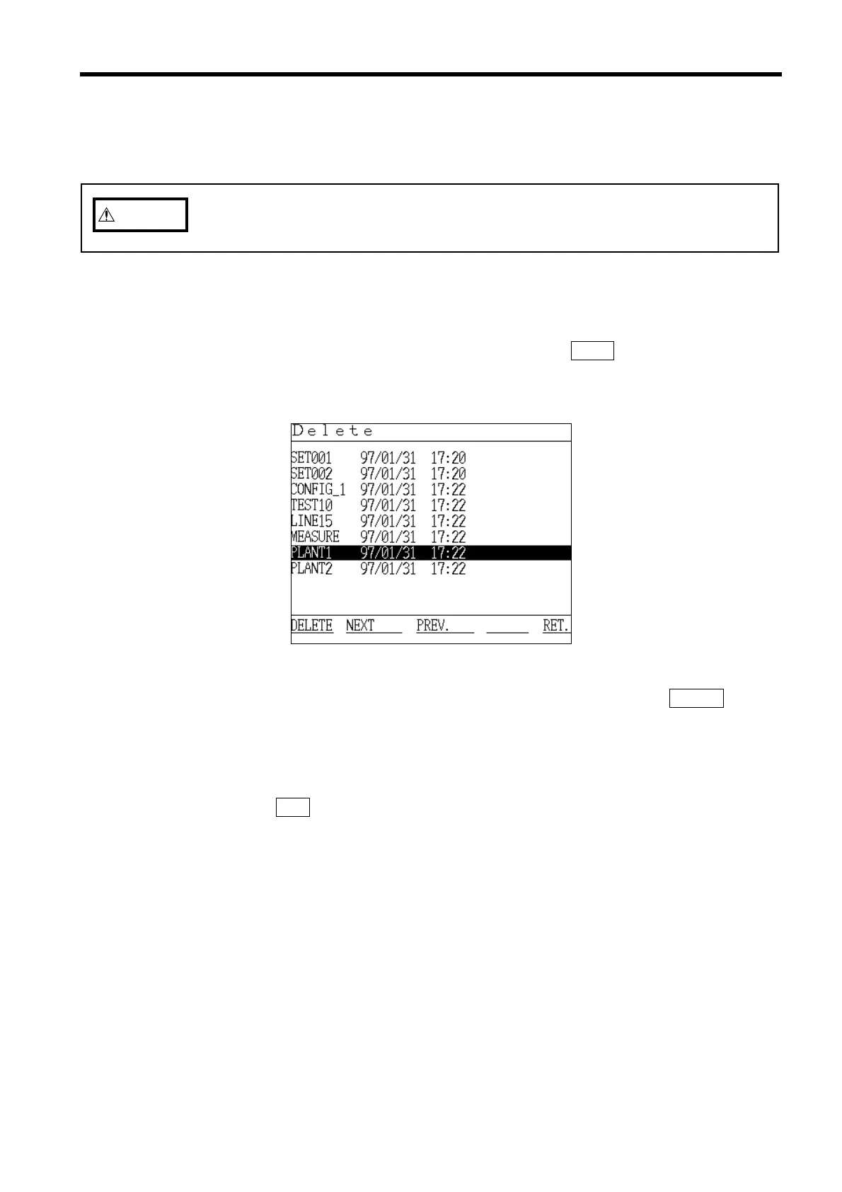 (2) Position the cursor at "Delete" and then press the