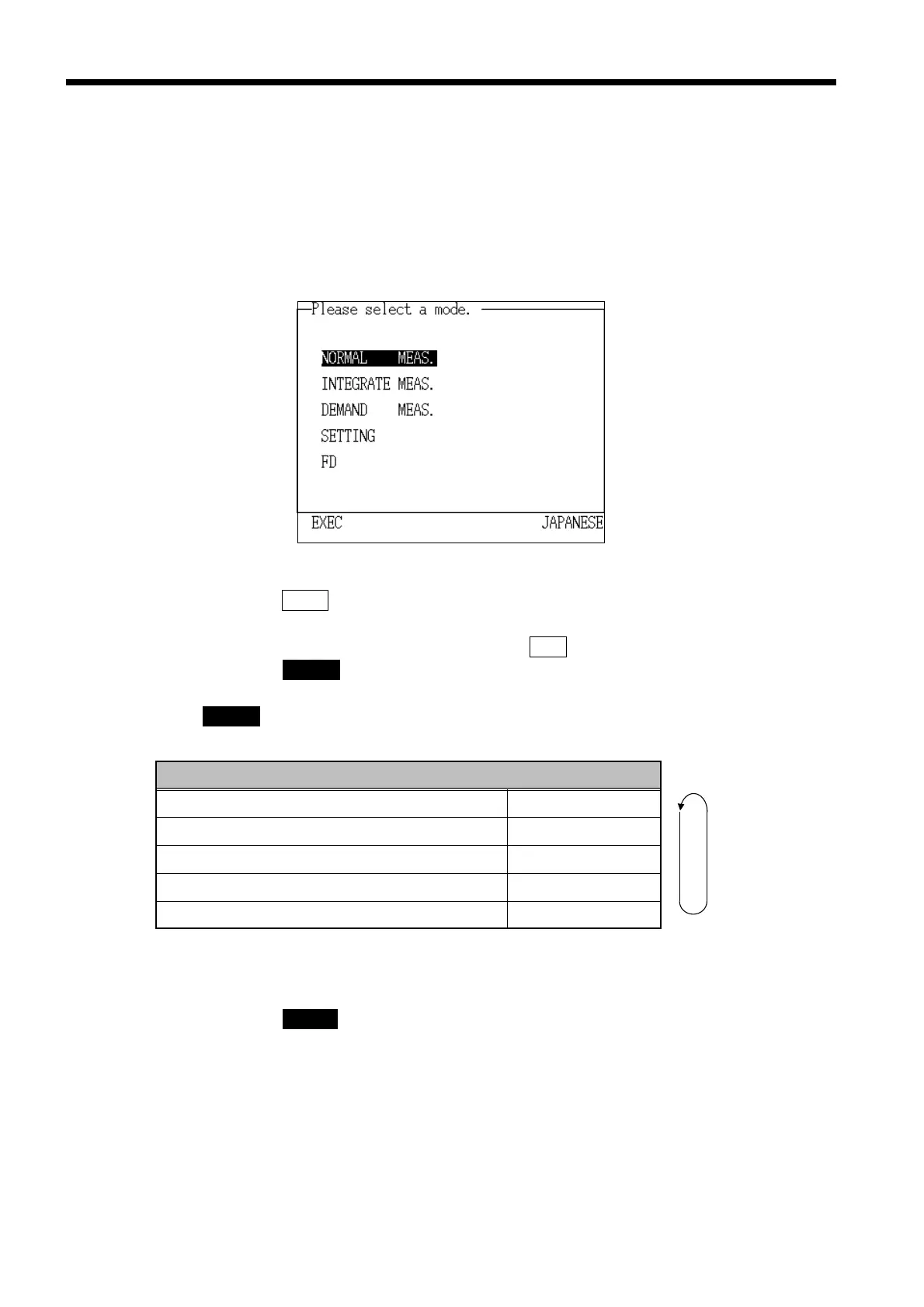 (1) Measurement mode selection
