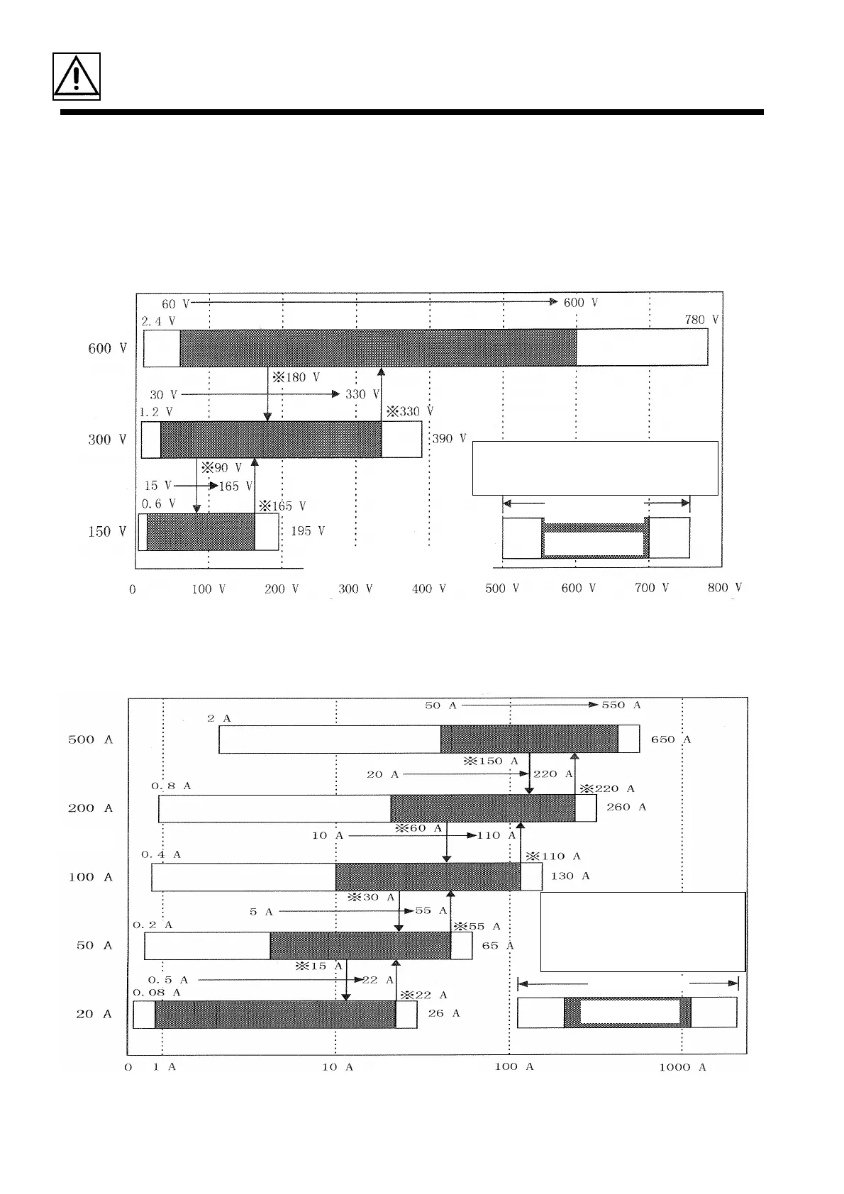The voltage and current ranges current ranges are set by using special voltage