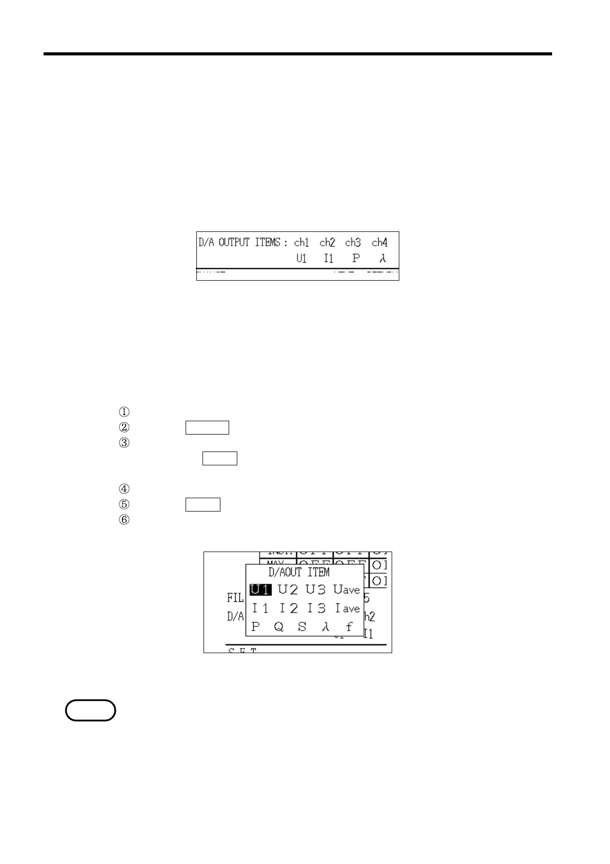 Position the cursor at "ch2" for "D/A output items".