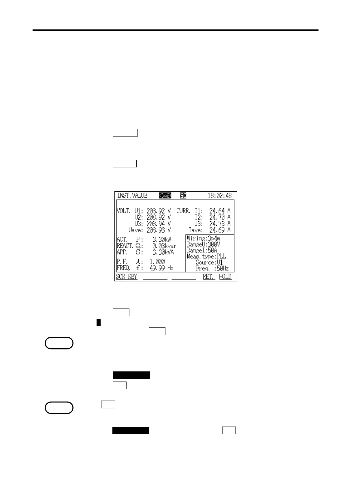 Instantaneous Value Measurement Screen