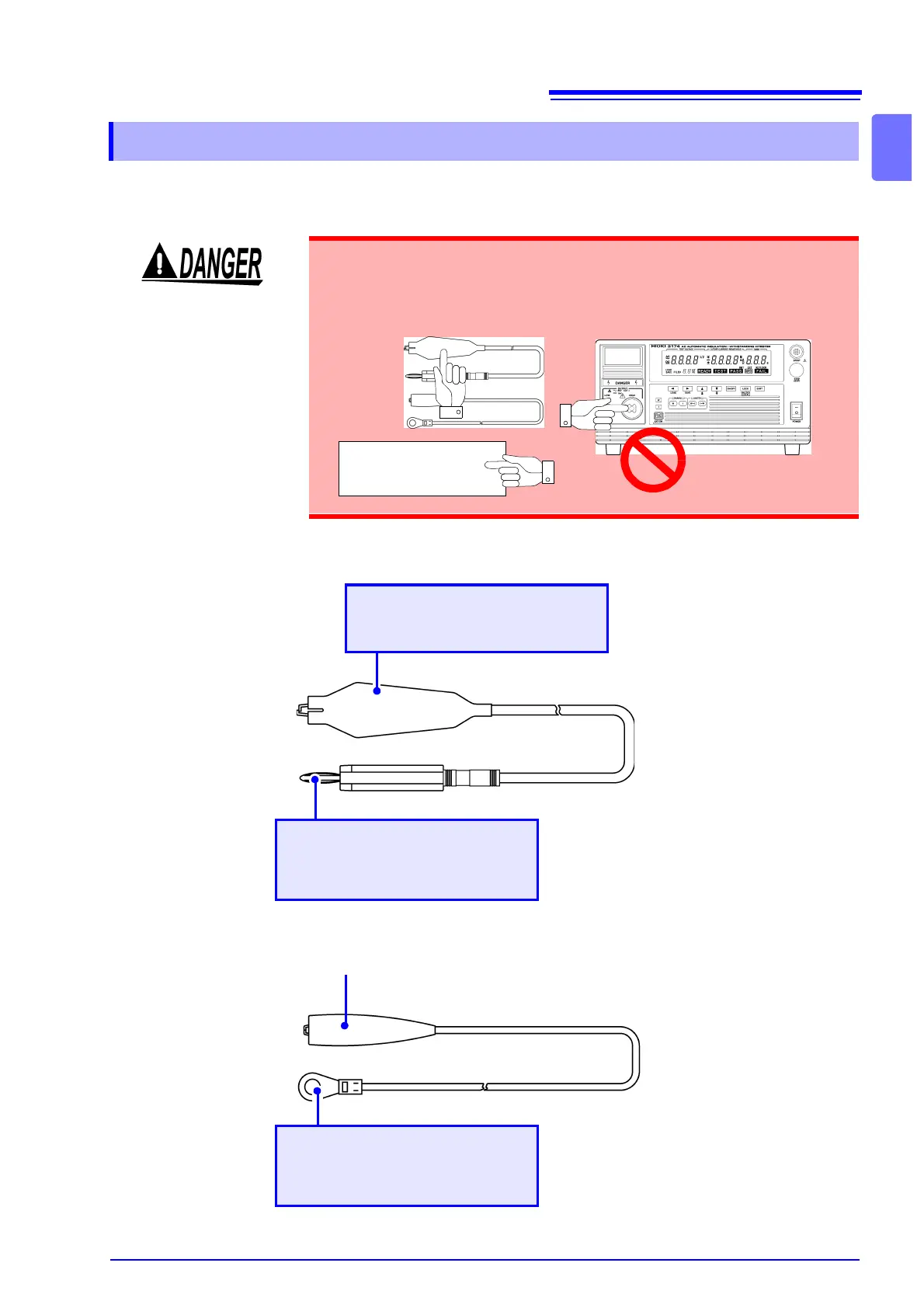 To prevent electric shock, when the DANGER lamp is lit or during the test,