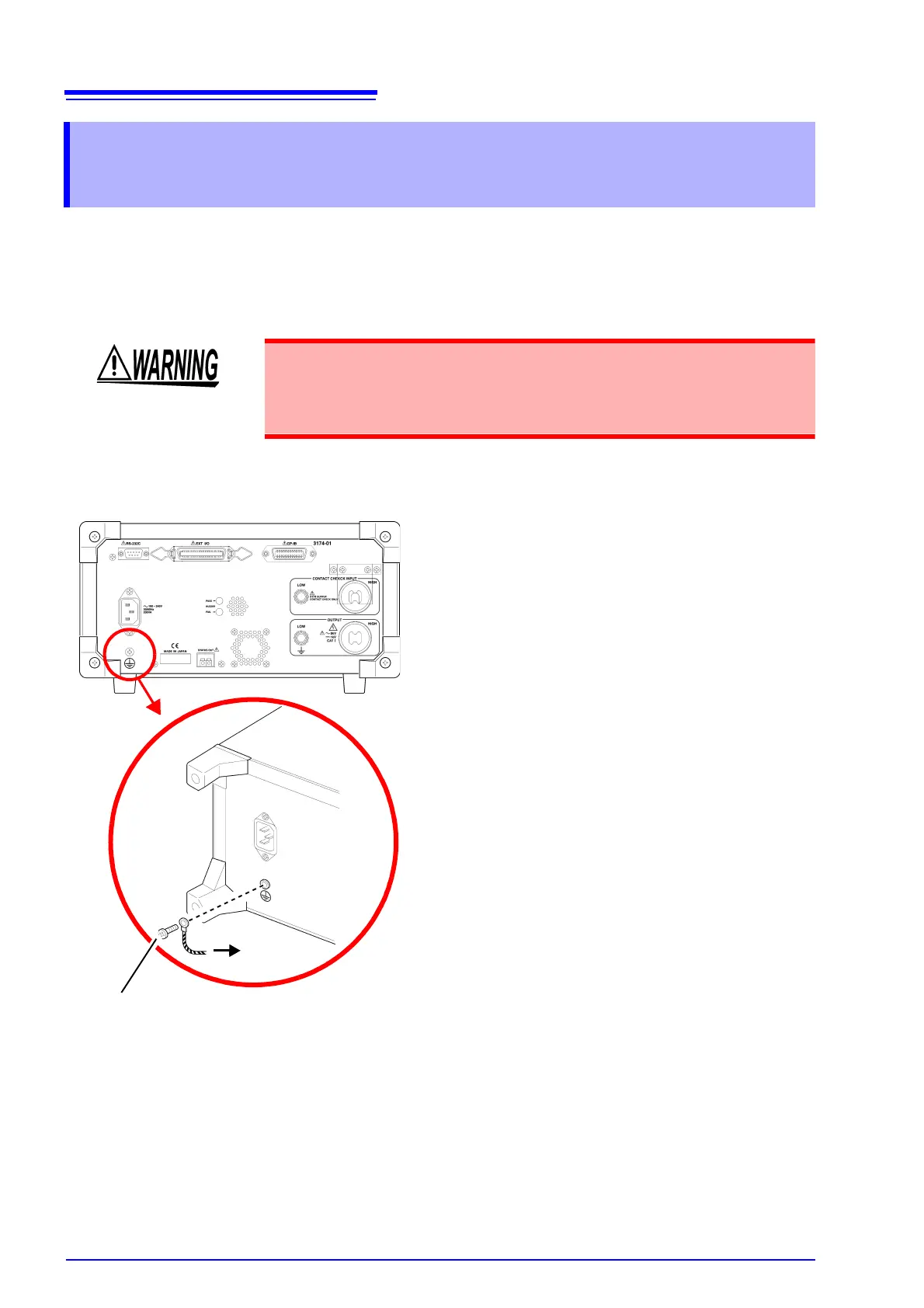• Connect the protective conductor terminal to earth (earth ground) before