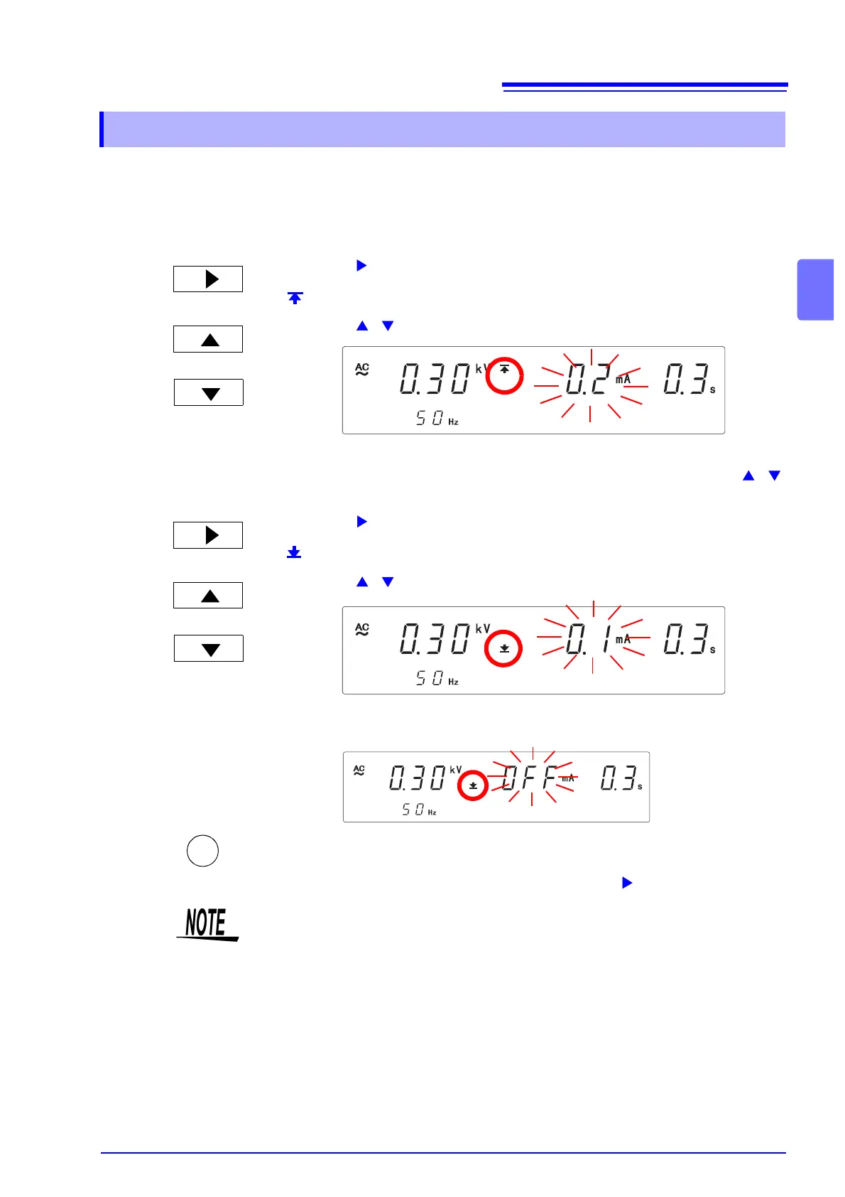 If no lower-limit test value is required, set it to “OFF” using the ON/OFF key.