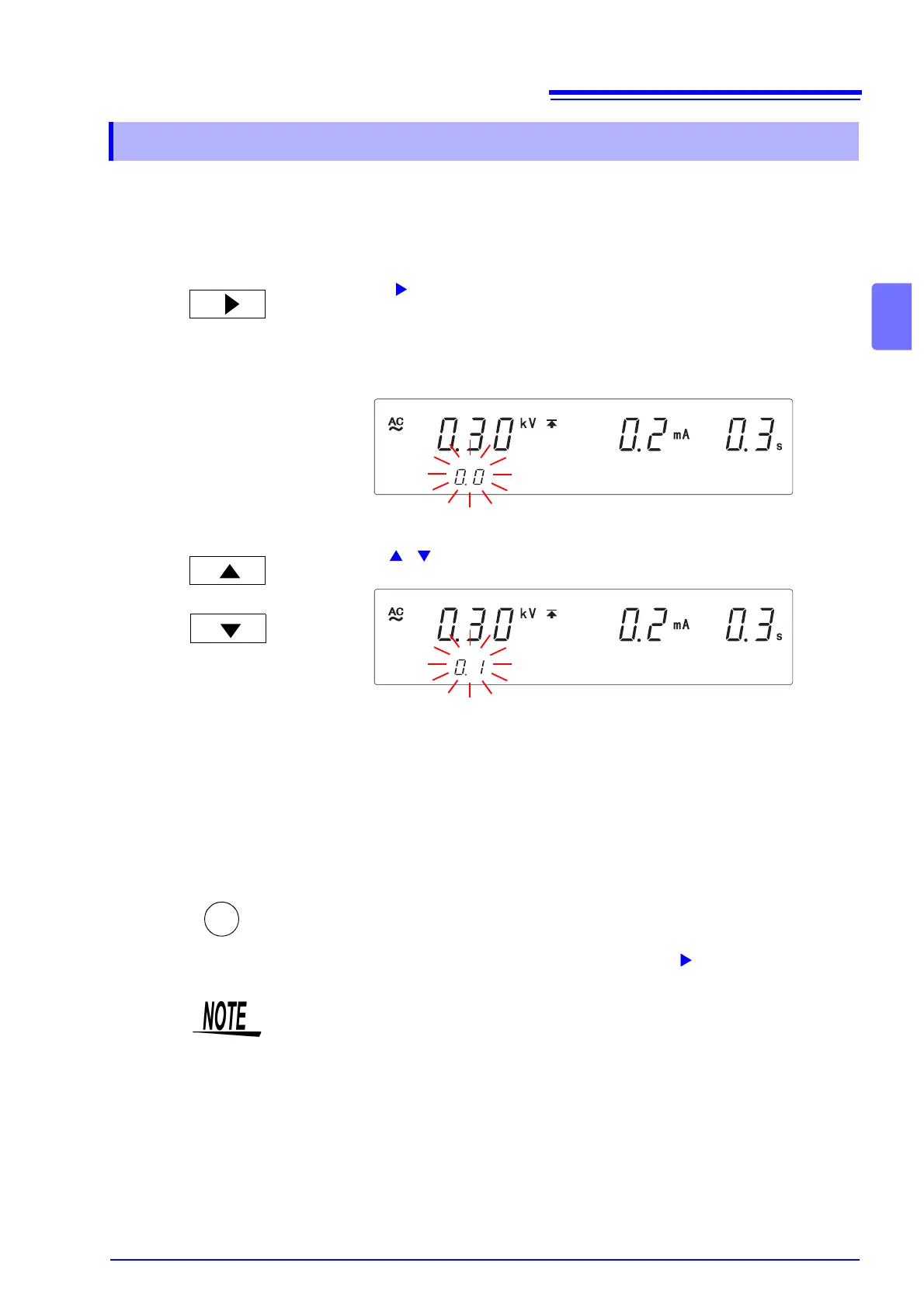 • When the test is started, a voltage indicated by the test voltage multiplied by