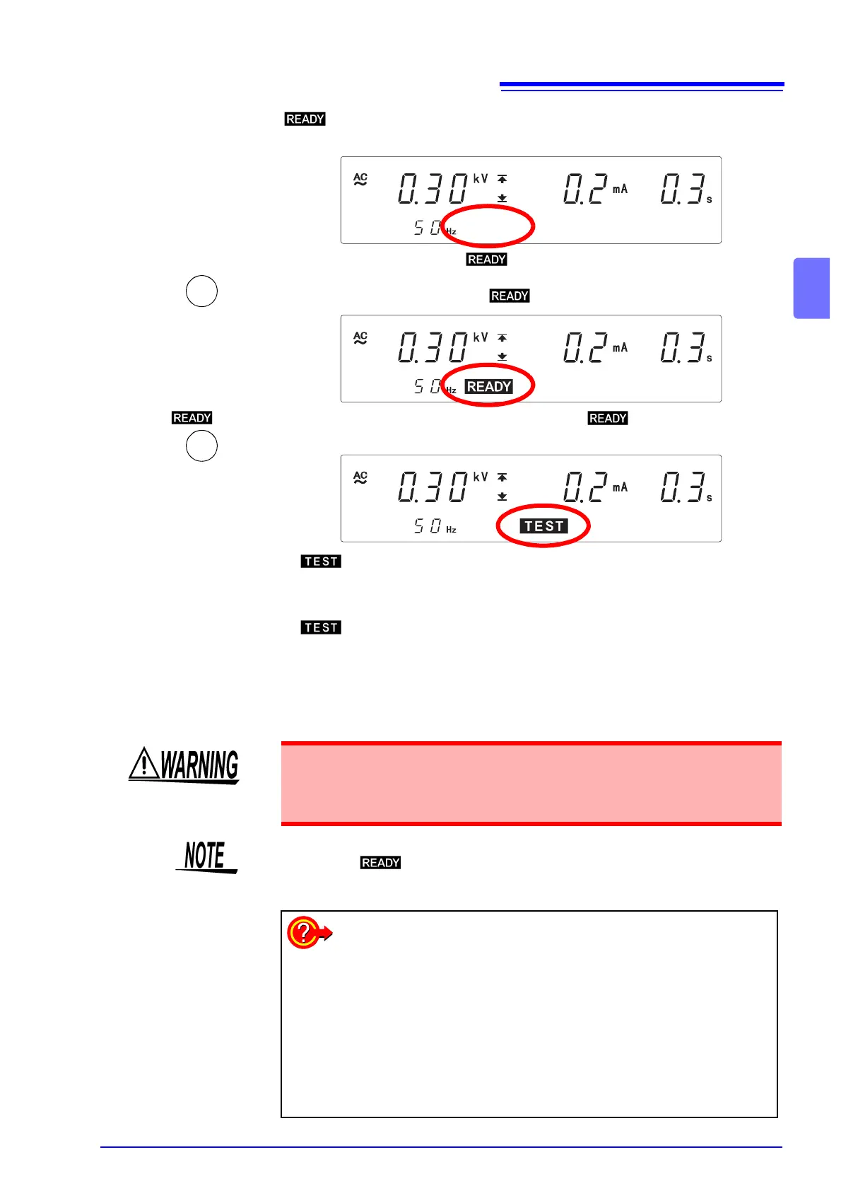 • lit up on screen : Output voltage has reached the test voltage. Test
