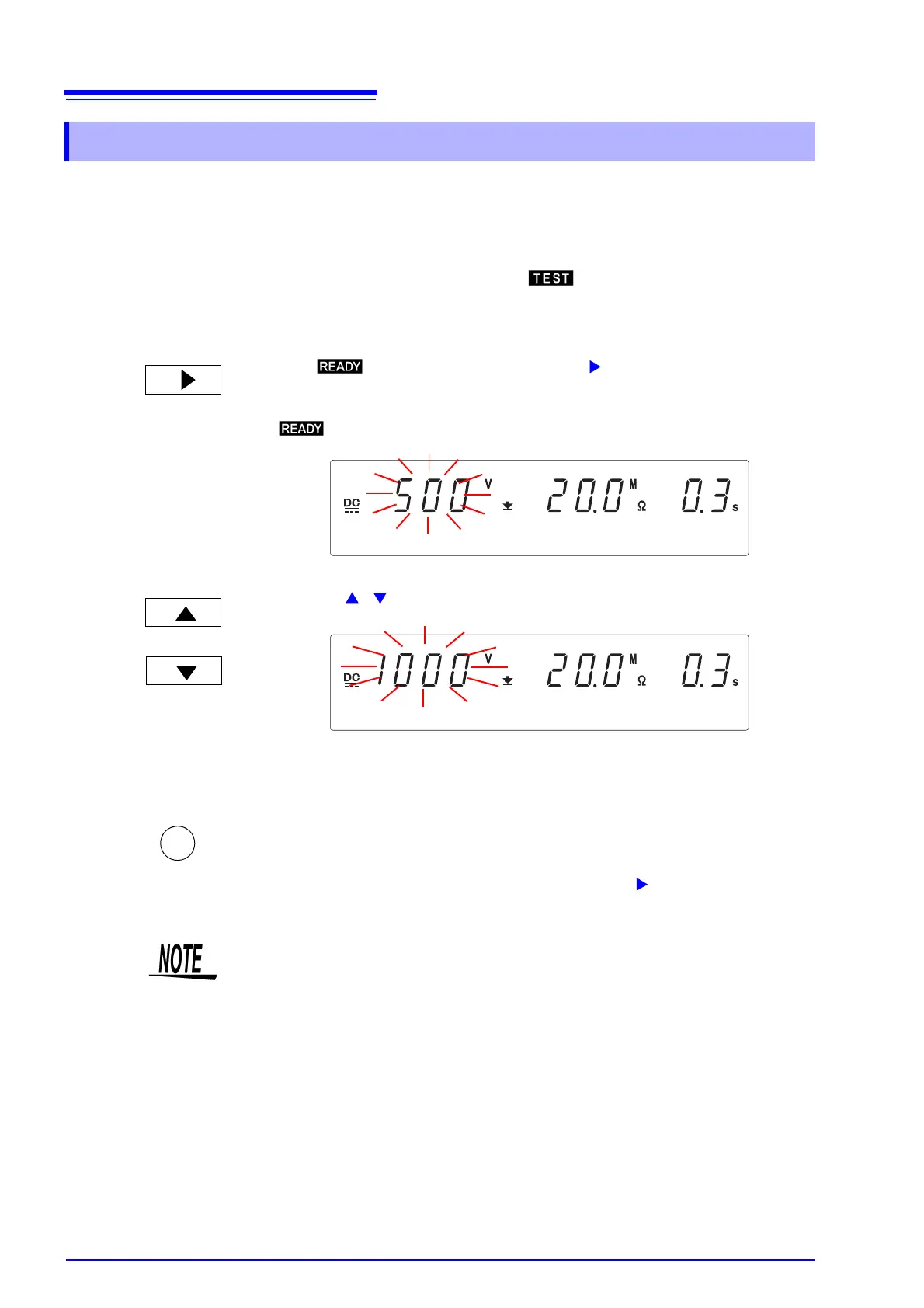 Press the / keys to set the test-voltage value.